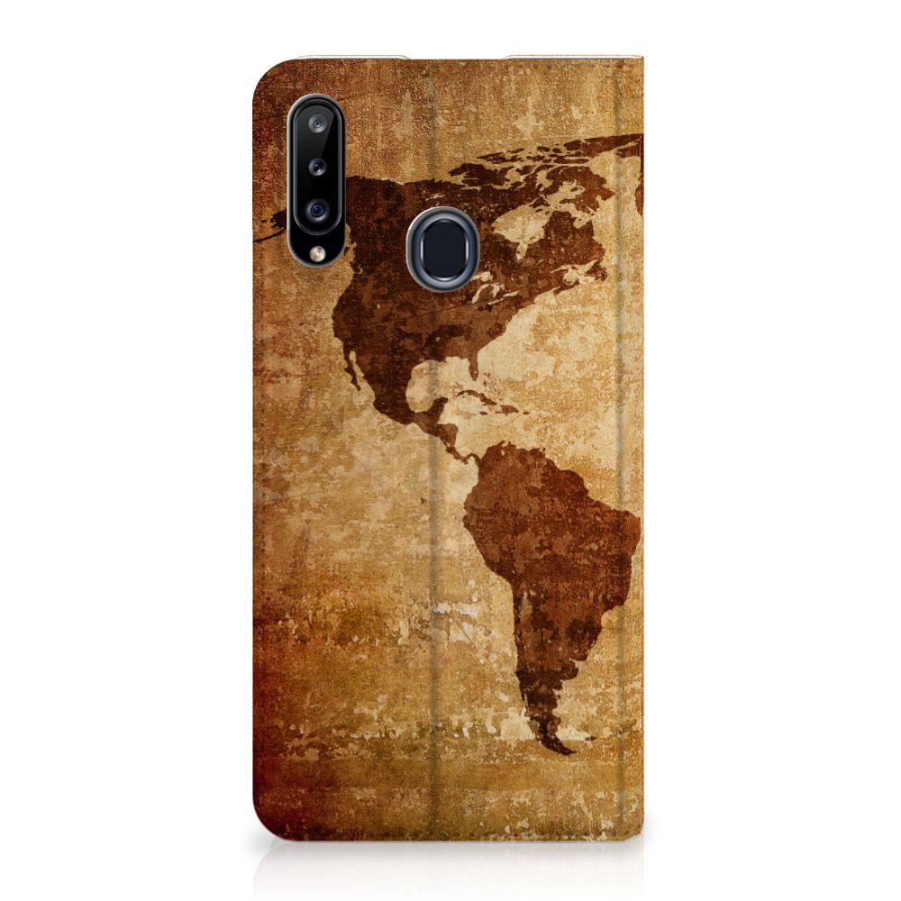 Als je een hoesje koopt met een wereldkaart, kun jij op veilige wijze met je smartphone rond de wereld reizen. Ga je zonder een boekhoesje met wereldkaart het buitenland verkennen, dan loop je veel te groot risico dat je stukken krijgt aan je smartphone. Met als gevolg dat je de belangrijke gebeurtenissen op je reis wellicht niet meer vast kunt leggen om door te sturen aan je vrienden. In het slechtste geval wordt jouw toestel zonder een smartphone hoesje met wereldkaart onbruikbaar. Wij kunnen de wereldkaart bedrukken op een stand case. Een Samsung Galaxy A20s Book Cover beschermt jouw telefoon aan alle kanten en beschikt over een 1 opbergvakje en een speciale standaard. Het hoesje wordt afgesloten met een magneet aan de binnenzijde. De houder aan de binnenzijde is van TPU. Dit stand hoesje met wereldkaart is voor een zeer laag bedrag te bestellen.