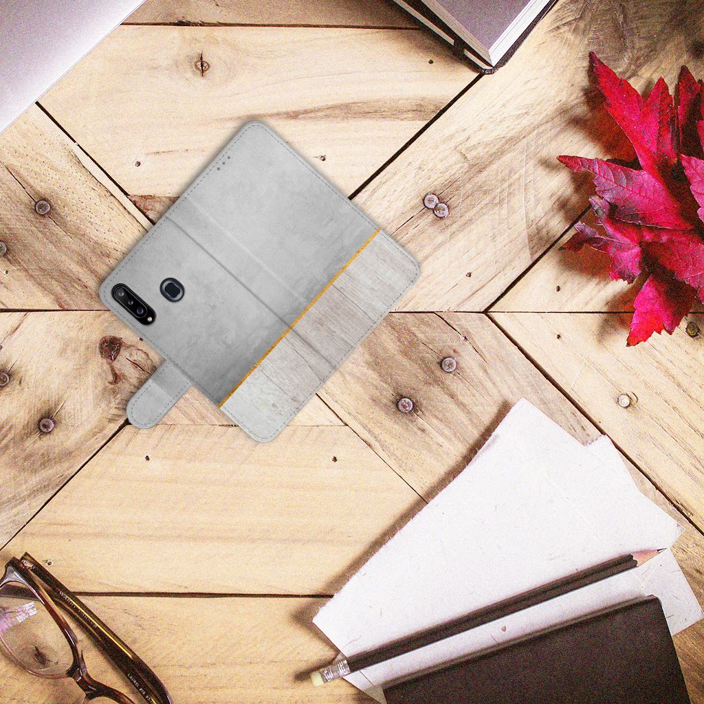 Samsung Galaxy A20s Bookstyle Case met pasjes Wood Concrete