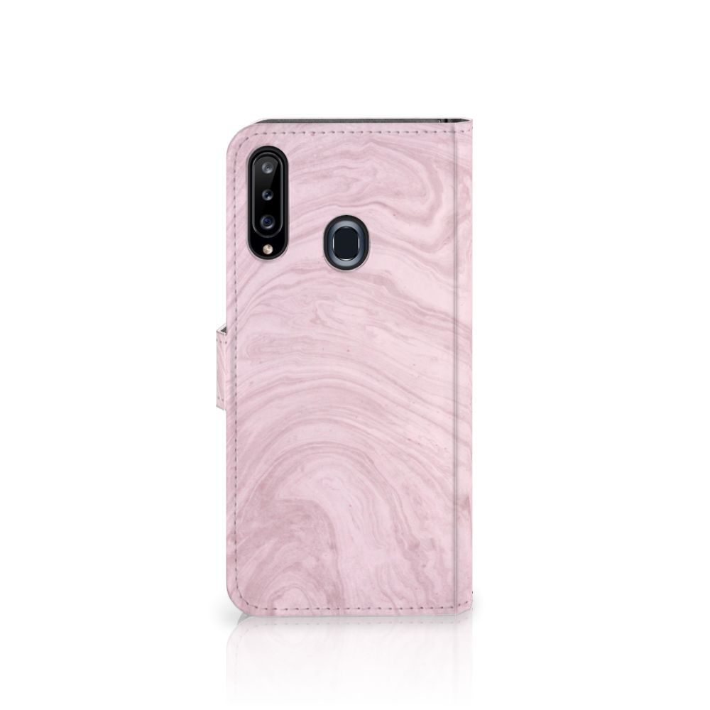 Samsung Galaxy A20s Bookcase met magnetische sluitclip Marble Pink