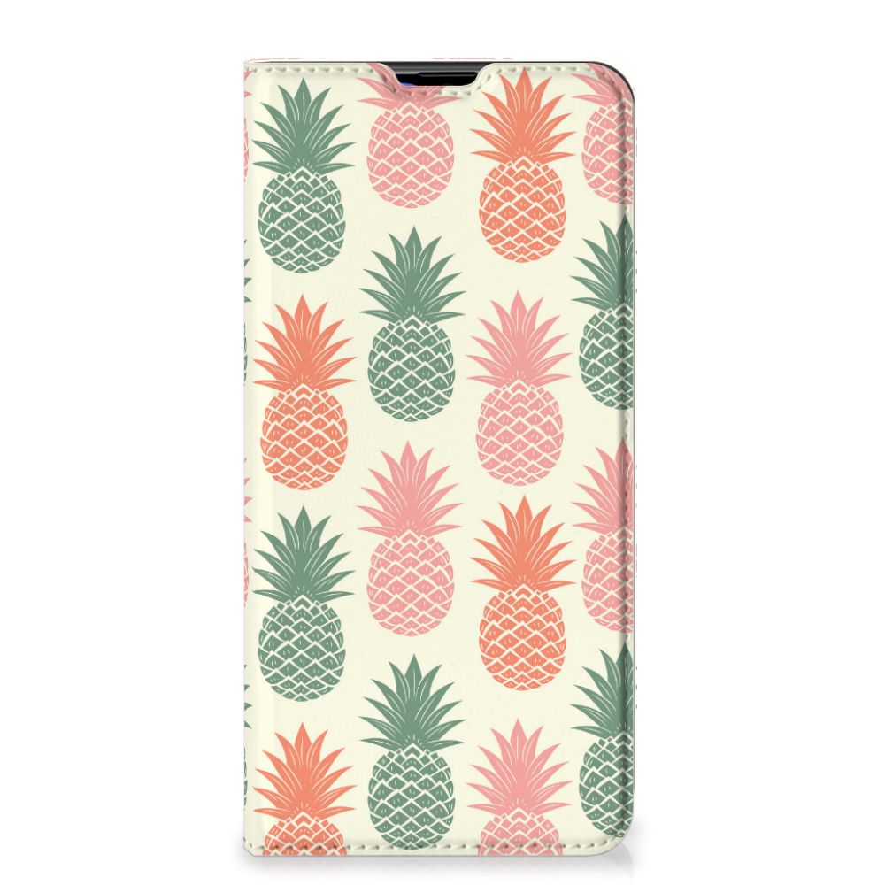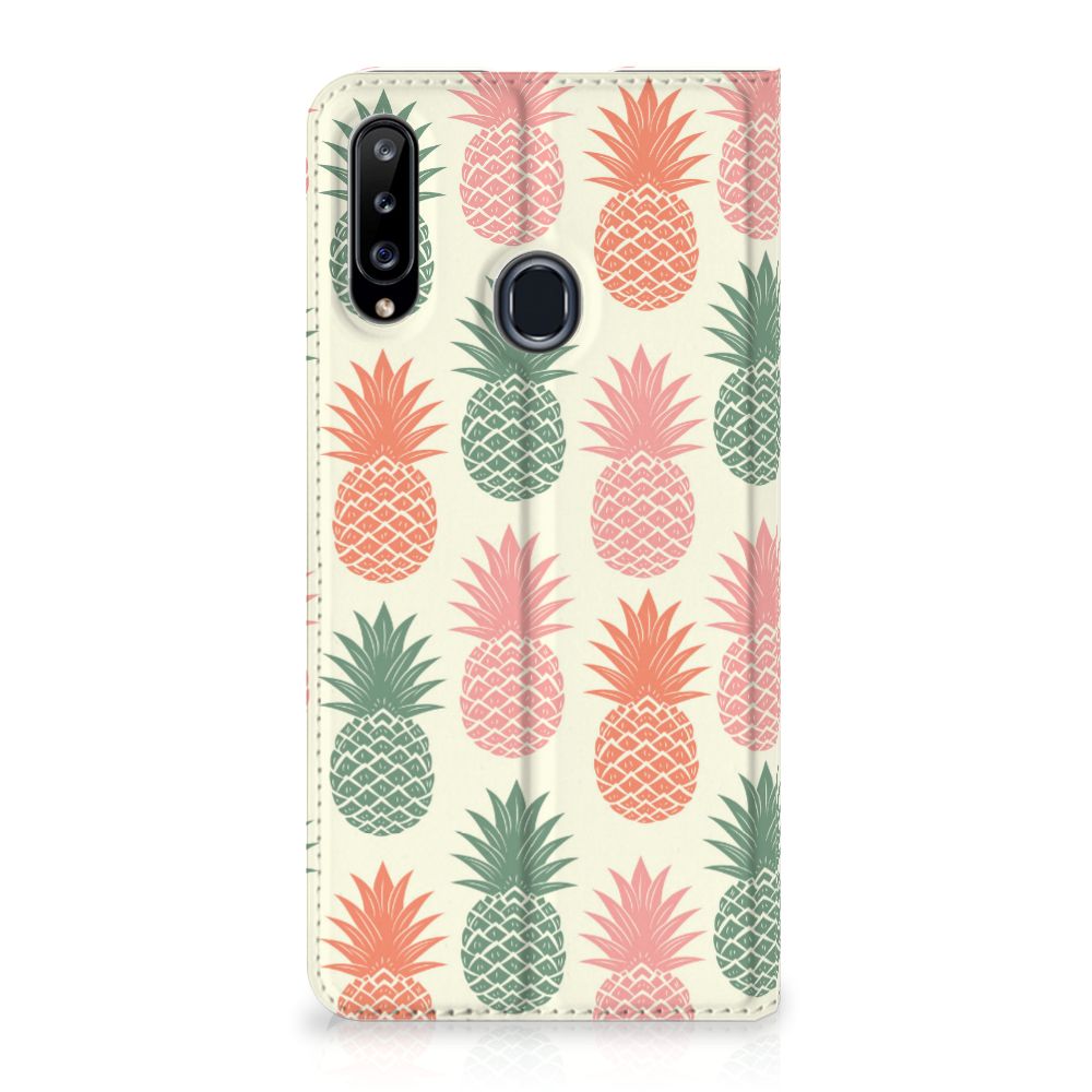 Ananas is een woord uit het Tupi, de taal van de Tupi-indianen, en betekent uitmuntende vrucht. Dit fruit van zeer hoge kwaliteit staat op onze superieure boekhoesjes, stand cases, hard cases en TPU cases. Jij blijft er gezond uitzien als je zo nu en dan een hap neemt van een Ananas , jouw smartphone blijft tip top in orde als je er een leuk telefoonhoesje omheen doet. Een ananas heeft stevig, veerkrachtig vruchtvlees. Een beetje te vergelijken met het TPU in onze hoesjes. TPU is elastisch materiaal, dat zeer buigzaam is. Vandaar dat het zeer schokbestendig is. Het ananas design staat op een stand case. Deze Samsung Galaxy A20s Flip Style Cover beschermt jouw telefoon aan alle kanten en beschikt over een 1 opbergvakje en een speciale standaard. Het hoesje wordt afgesloten met een magneet aan de binnenzijde. De houder aan de binnenzijde is van TPU.