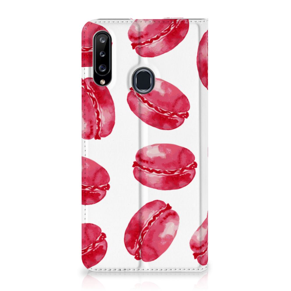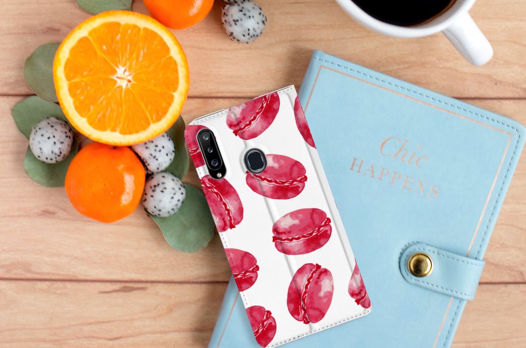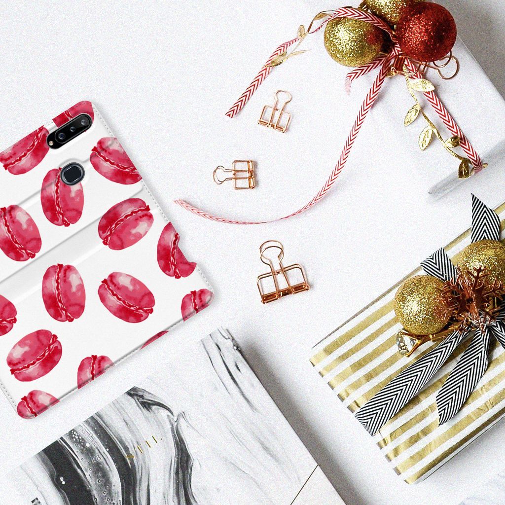 Dit stand hoesje met Pink Macarons is een zeer opvallende bescherming voor jouw smartphone. Macarons zijn Franse koekjes: kleine, rond en luchtig. Ze worden in veel verschillende smaken gemaakt, herkenbaar aan de verschillende kleuren zoals chocolade (donkerbruin), mokka (middenbruin), kersen (rood), pistache (groen), aardbei (roze), framboos (karmijn). Deze kleuren kun je net allemaal zien op dit fraaie design hoesje met roze macarons. Heb je altijd al een Samsung Galaxy A20s Flip Style Cover willen hebben met roze macarons? Grijp dan nu je kans. Deze case heeft zeer veel goede eigenschappen, zoals 1 opbergvakje en een magnetische sluiting aan de binnenkant. Dit design hoesje met roze macarons wordt aan alle zijden bedrukt. De houder aan de binnenkant van het hoesje is van TPU. De case heeft ook een handige standaard.