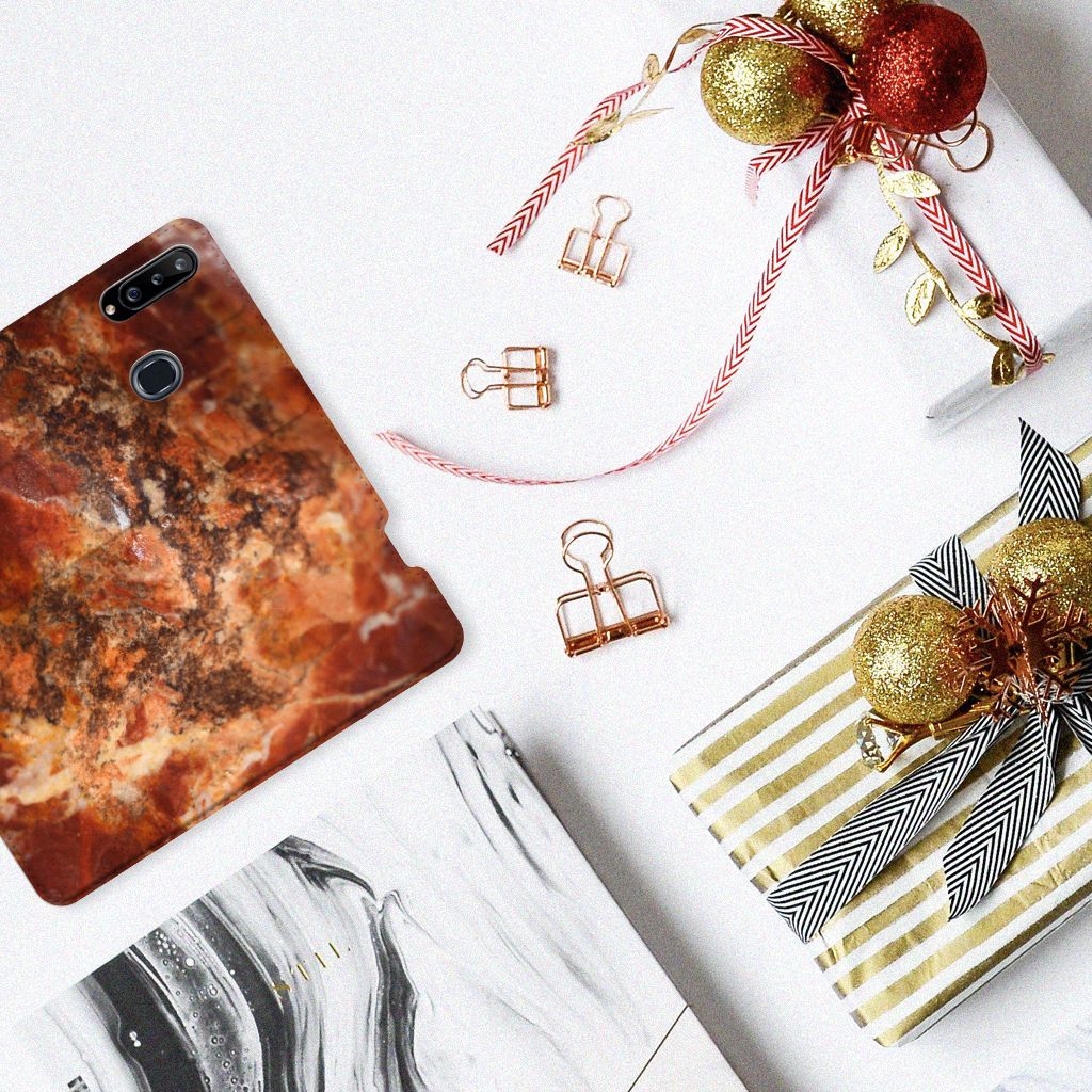 Dit design hoesje met Marmer Bruin is voor de artistieke personen onder ons. De Grieken en Romeinen wisten het al te waarderen door het als bouw- en bekledingsmateriaal toe te passen. Naast het witte Carrara marmer met haar zacht grijze geaderde belijning zijn de diverse soorten in een ruim kleurenpallet te krijgen. We hebben verschillende kleuren op design hoesjes gezet, zoals in dit geval bruin marmer. Dit is een Samsung Galaxy A20s Standcase met marmer in bruine kleur. Het marmer wordt bedrukt op alle zijden van een stand case, die beschikt over 1 vakje voor een pasje en een magnetische sluiting aan de binnenkant. Verder heeft de case een houder van TPU. De rijkheid aan kleuren en varianties in afwerking geeft ontwerpers de vrijheid om met marmer hele mooie architectonische projecten te realiseren. Wij hebben onze ontwerper ook veel vrijheid gegeven. Het resultaat zie je terug in deze stand case met bruin marmer, dat de ideale bescherming voor jouw smartphone biedt.
