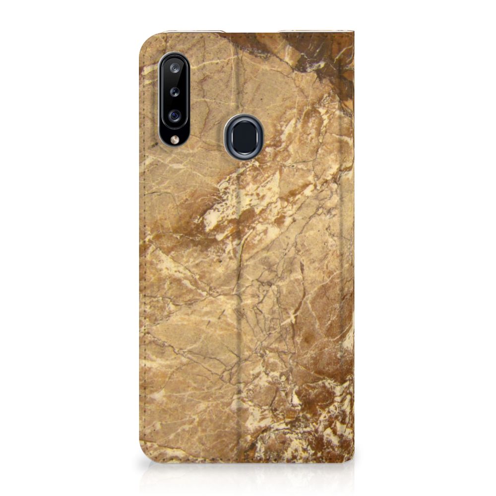 Dit design hoesje met Marmer in lichtbruine kleur is voor de artistiekelingen onder ons. De Grieken en Romeinen wisten het marmer al te waarderen door het in de bouw toe te passen. Naast het witte marmer zijn de diverse soorten marmer in een gevarieerde kleurensamenstelling te krijgen. We hebben verschillende mooie kleuren op design hoesjes gezet, zoals in dit geval het lichtbruine marmer. Dit is een Samsung Galaxy A20s Standcase met marmer in lichtbruine kleur. Het marmer wordt bedrukt op alle zijden van een stand case, die beschikt over 1 vakje voor een pasje en een magnetische sluiting aan de binnenzijde. Verder heeft de hoes een houder van TPU. Door de rijkdom aan kleuren en varianties in afwerking kunnen ontwerpers met marmer schitterende architectonische projecten realiseren. Wij hebben hetzelfde gedaan en onze ontwerper veel vrijheid geboden. Het resultaat zie je terug in deze stand case met lichtbruin marmer, dat de ideale bescherming voor jouw smartphone is.