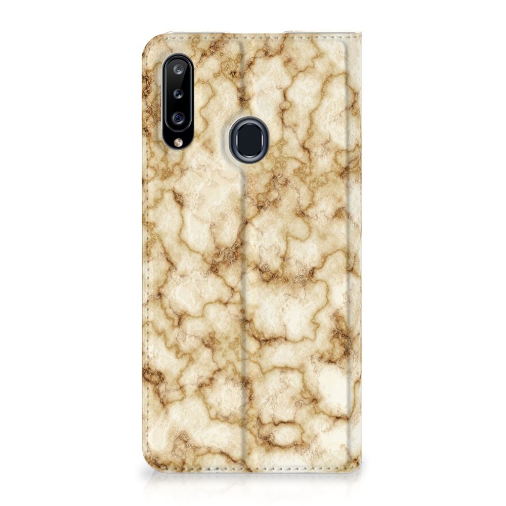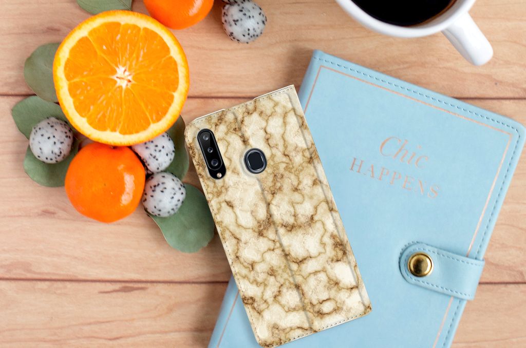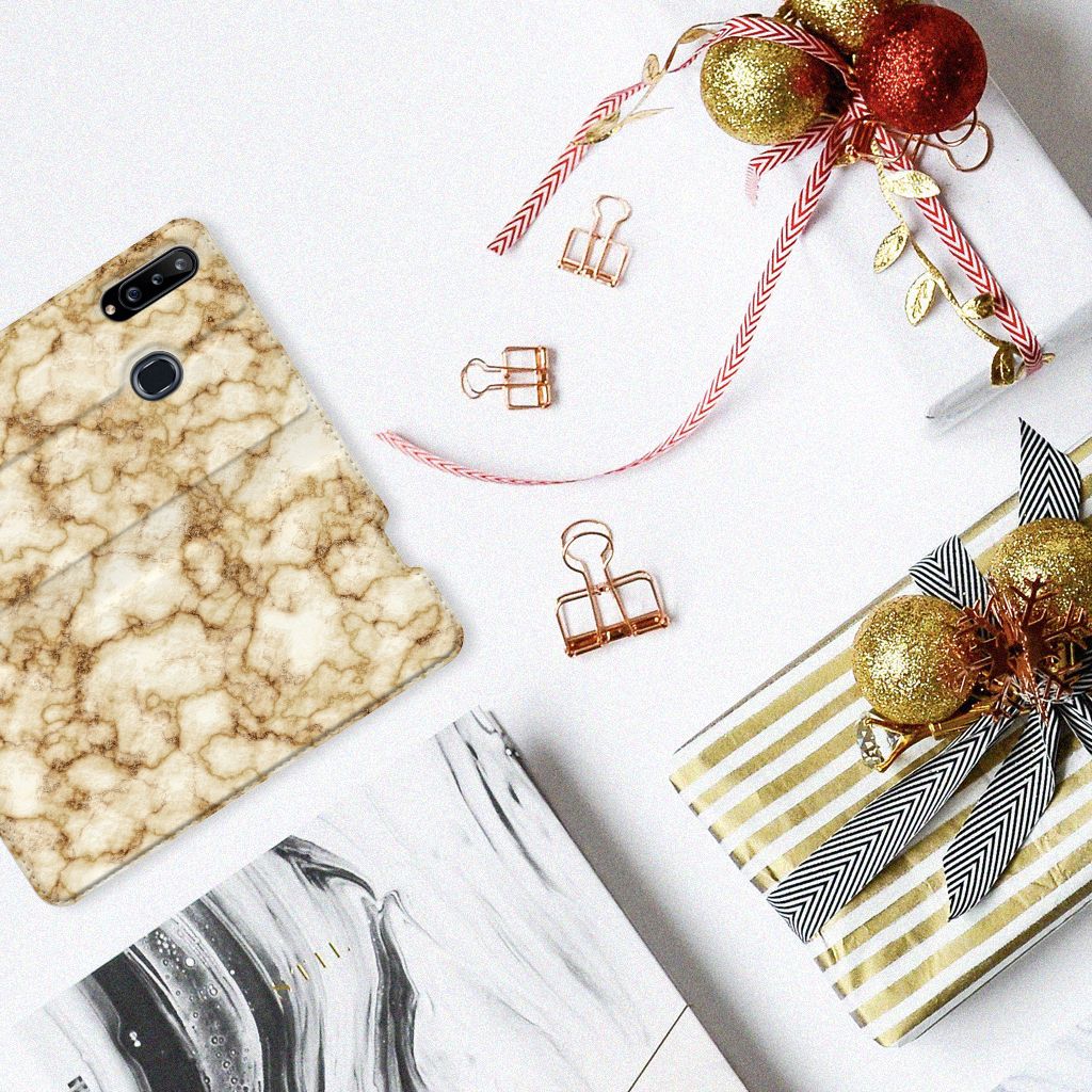 Deze Samsung Galaxy A20s Standcase met Marmer Goud is het waard om een blokje voor om te rijden. Dit is overigens niet nodig. Als je het hoesje met goud marmer nu bestelt heb je het zeer snel in huis. Je kunt er bij wijze van spreken thuis op gaan zitten wachten. Je hebt diverse soorten marmer. We hebben enkele fraaie kleuren op onze hoesjes gezet, zoals in dit geval het gouden marmer. Het gouden marmer wordt bedrukt op alle zijden van de stand case, die beschikt over een vakje voor pasjes of briefgeld en een magnetische sluiting aan de binnenzijde. Verder heeft de case met goud marmer een houder van TPU. De rijkheid aan kleuren en variaties in afwerking is een schitterende eigenschap van marmer. Dit stand hoesje met goud marmer heeft ook veel schitterende eigenschappen en is de ideale bescherming voor jouw smartphone.