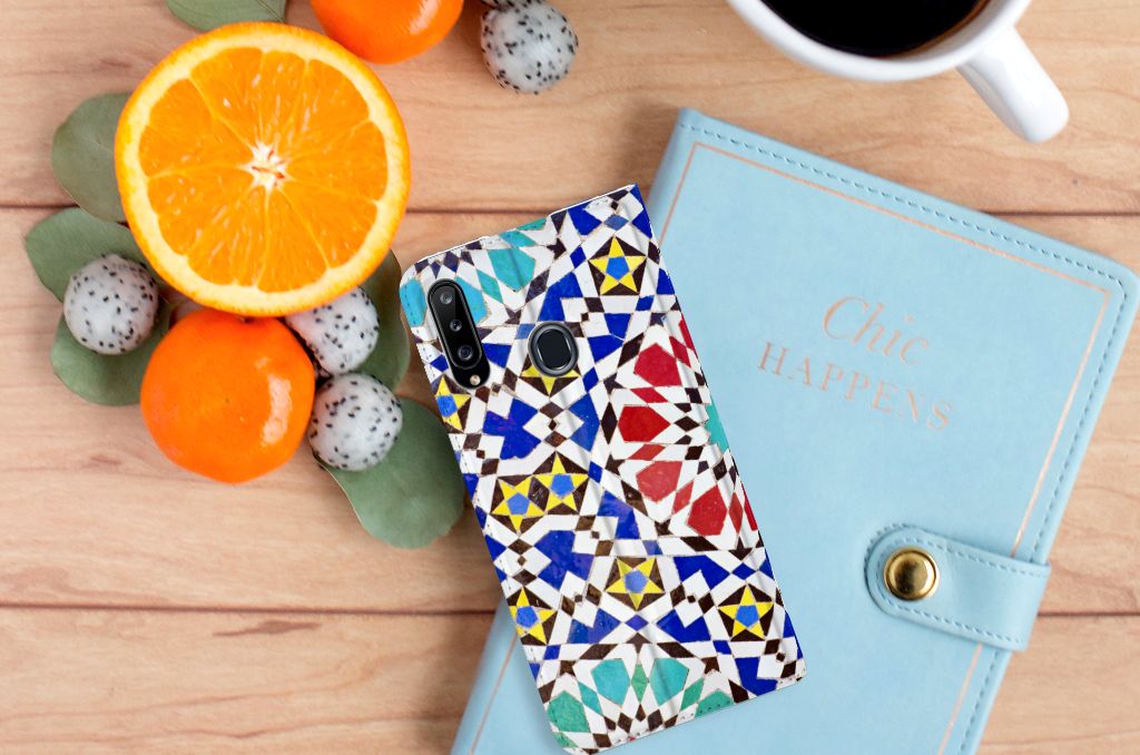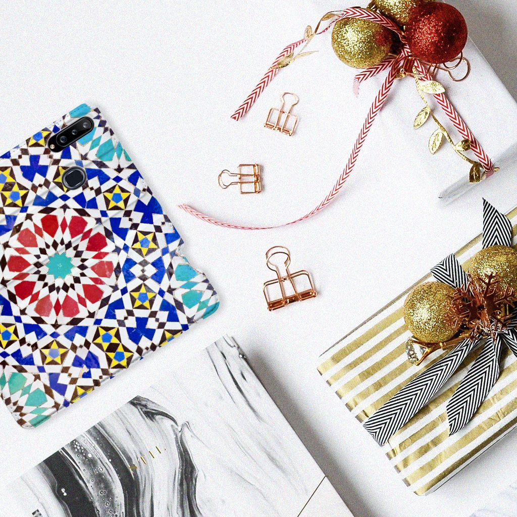Aan design hoesjes met kunstvormen geen gebrek in onze uitgebreide collectie. Wat dacht je van dit design hoesje met Mozaïek . Dit is een kunstvorm waarbij een grote afbeelding wordt gemaakt uit een groot aantal kleine gekleurde steentjes (tesserae), die in een vloer of wand worden gemetseld. Deze gekleurde steentjes zie je terug op deze stand case met design van mozaïek. Een stand case is een van de veiligste cases die er bestaan. Een Samsung Galaxy A20s Standcase met print zorgt voor een volledige bescherming van je smartphone en wordt aan alle zijden bedrukt met mozaïek. Verder is de houder aan de binnenzijde van TPU. De Grieken en Romeinen beheersten de kunst al. Op diverse plaatsen in Europa zijn mozaïeken teruggevonden die tot op de dag van vandaag goed bewaard zijn gebleven. Met een hoesje met mozaïek blijft jouw telefoon in tact. Je pasje en kun je in het vakje aan de binnenzijde stoppen. De case heeft ook een standaard.
