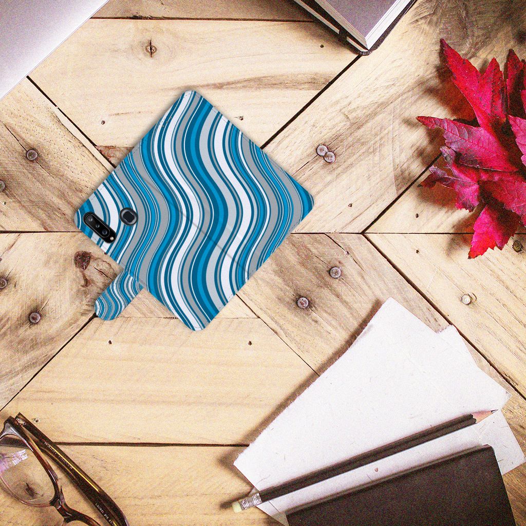 Zeer cool, dit hoesje met vooral blauwe kleuren, die in een golvende beweging jouw telefoon van een mooie uitstraling voorzien. Tijdens een zonnige vakantie aan zee is jouw smartphone perfect beschermd met dit telefoonhoesje. Het design Waves Blue van dit smartphone hoesje doet lichtjes denken aan een lolly, waarmee je een klein kind zeer blij maakt. Jouw Samsung Galaxy A20s zal er ook zeer vrolijk uitzien samen met dit design hoesje. De witte en grijze kleuren staan in mooi contrast met het blauw, waardoor de uitstraling van deze accessoire zeer mooi is. Ook voor andere kleuren kun je natuurlijk uitstekend terecht in ons assortiment. Het design staat op een boekhoesje. Dit Telefoon Hoesje beschermt jouw telefoon aan alle zijden en beschikt over verschillende opbergvakjes voor pasjes en briefgeld. De case sluit perfect af met het lipje aan de buitenkant. De houder aan de binnenzijde is van TPU.