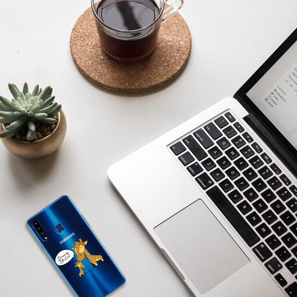 Ben je op zoek naar een uniek telefoonhoesje voor je Samsung Galaxy A20s? Dan ben je bij B2C Telecom aan het juiste adres! Speciaal voor jou hebben we dit prachtige Giraffe design in onze collectie hoesjes opgenomen. Het design wordt bedrukt op een Telefoonhoesje met Naam en is gemaakt van flexibel rubber. Het design wordt alleen aan de bovenkant van het hoesje bedrukt en de randen blijven transparant. Aan de zijkanten zijn uitsparingen gemaakt waardoor je met gemak alle knoppen en poorten kunt bedienen. Wij adviseren om dit hoesje in combinatie met een screenprotector te gebruiken voor een langere levensduur van je telefoon. Wil je dit design hoesje nog iets extra's geven? Voeg dan gratis je naam of een quote toe! Is dit design hoesje toch niet helemaal wat je zocht? Ontwerp dan zelf een hoesje in ons ontwerpprogramma.
