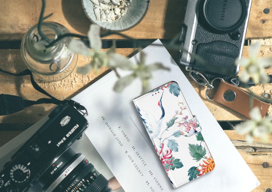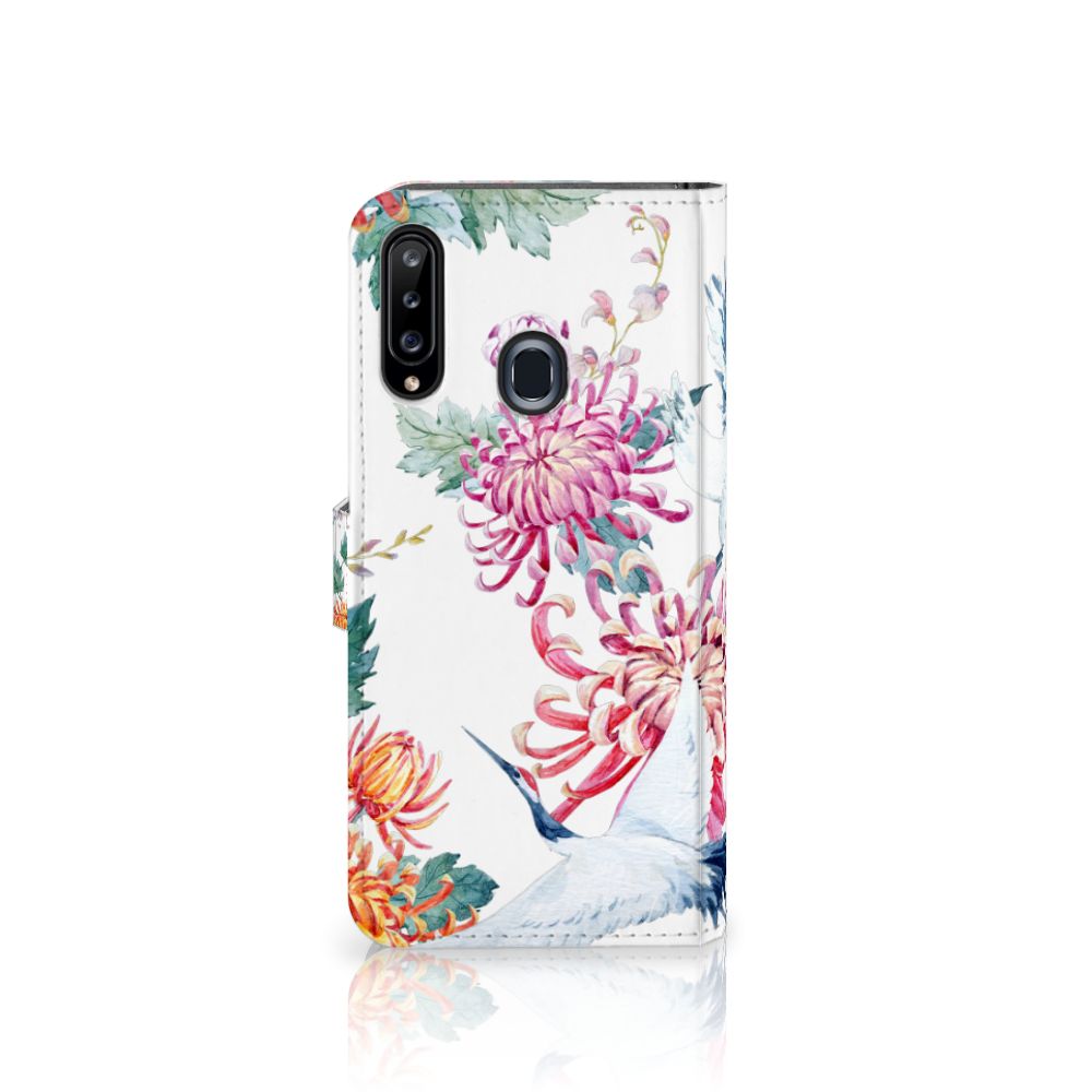 Samsung Galaxy A20s Telefoonhoesje sluit met magnetische lipje Bird Flowers