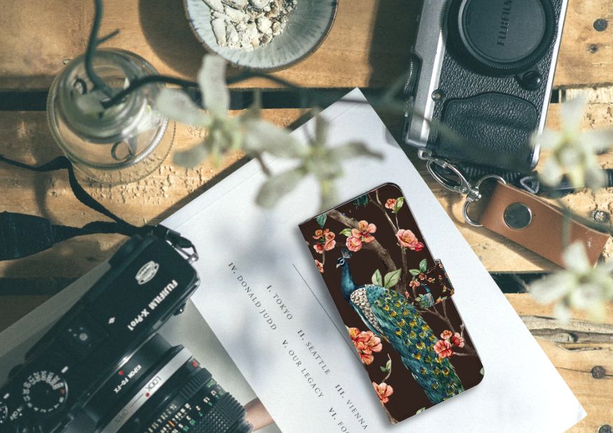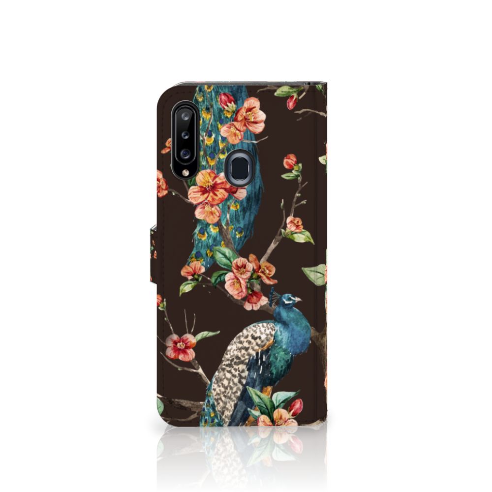 Samsung Galaxy A20s Telefoonhoesje sluit met magnetisch lipje Pauw | Bloemen
