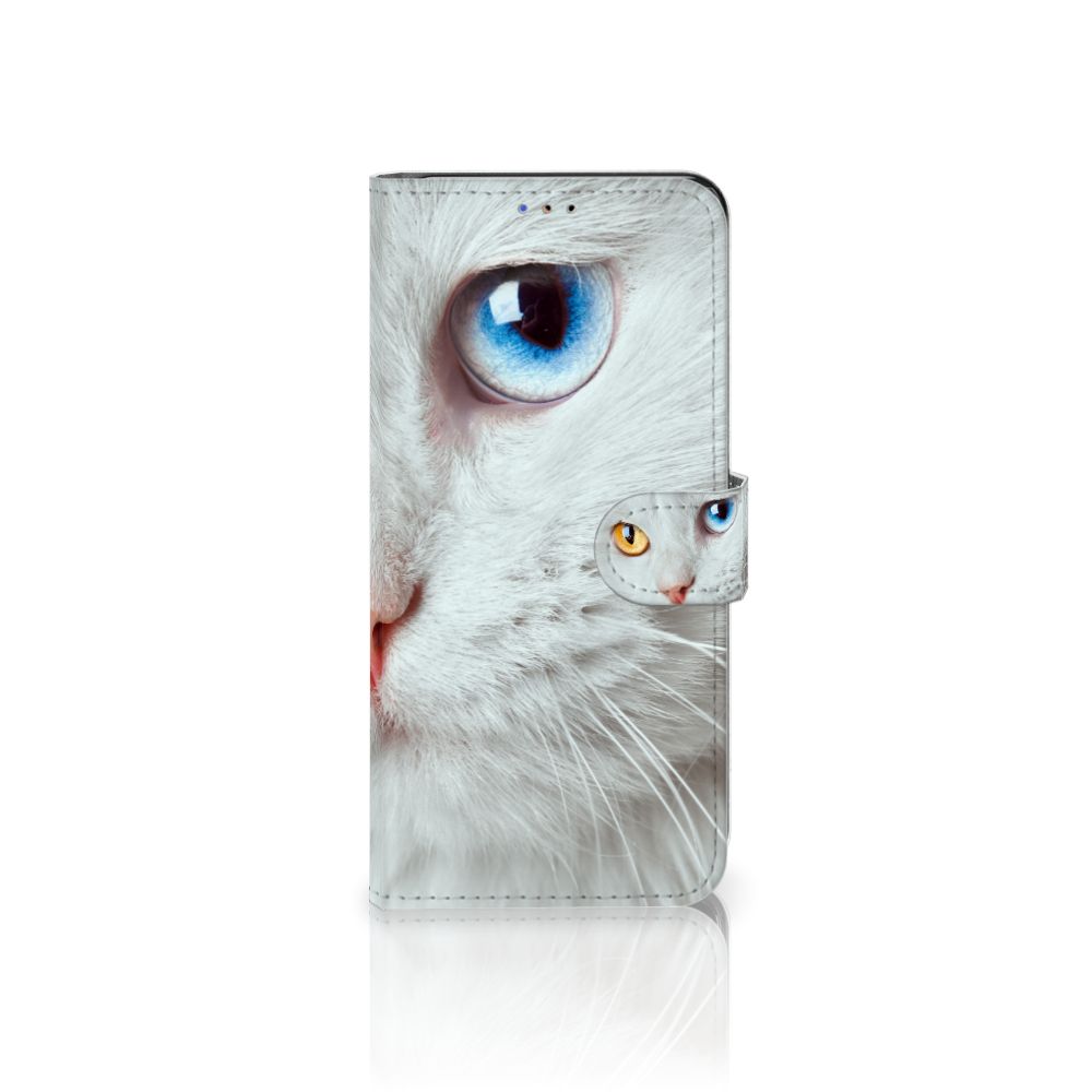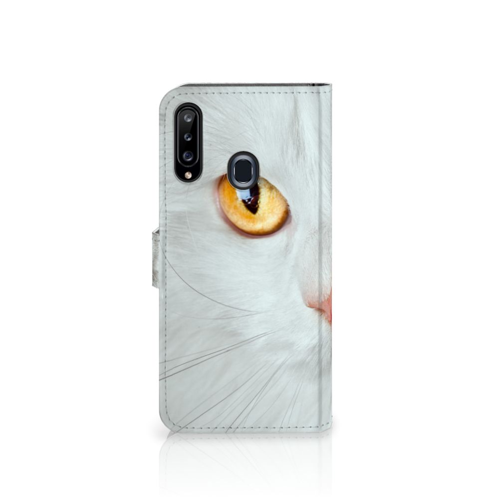 Samsung Galaxy A20s Telefoonhoesje met magnetisch lipje als sluiting Witte Kat