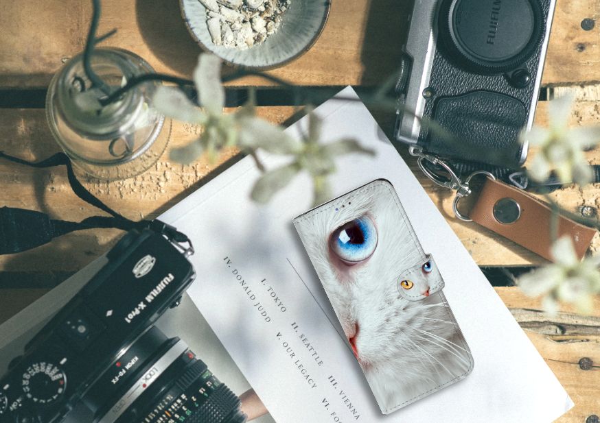 Witte katten zijn erg bijzonder en dat is precies de reden dat wij deze op prominente wijze op dit design hoesje hebben geplaatst. Maar deze witte kat is extra speciaal, doordat de ogen twee verschillende kleuren hebben: blauw en vurig rood. Hiermee heb jij als uniek mens ook een unieke bookcase. Ook de manier waarop dit telefoonhoesje voor de Samsung Galaxy A20s is bedrukt, is bijzonder. Je ziet namelijk een kleinere versie van dezelfde kat terug op het lipje. Hierdoor zie je de speciale witte kat twee keer terugkomen op jouw hoesje. Omdat je waarschijnlijk een dierenliefhebber bent als je dit Telefoonhoesje met Pasjes uitkiest, is dit ook een erg duurzaam hoesje. Het hoesje wordt aan alle kanten met duurzame inkt bedrukt.