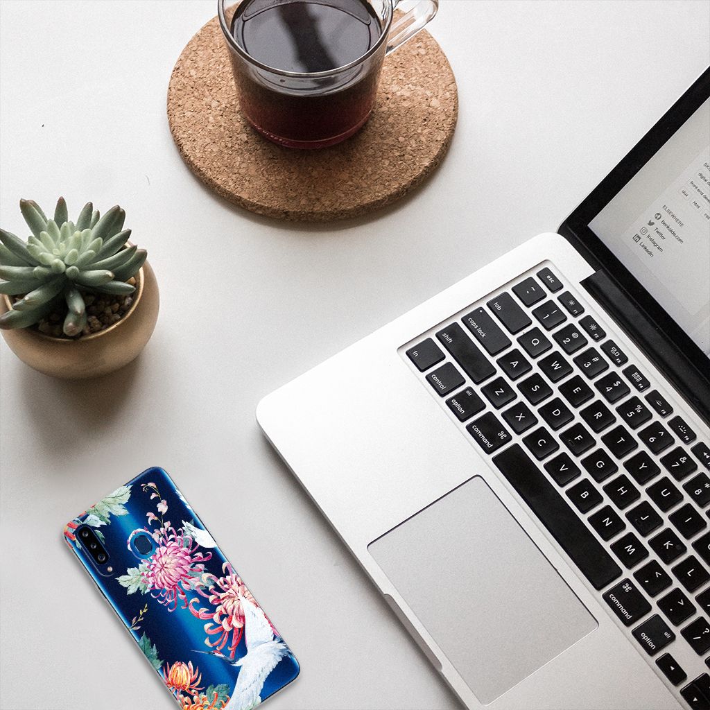 Verspreid over de hele wereld leven 19 soorten ooievaars. De spanwijdte – dat is de afstand van vleugeltip tot vleugeltip – van een volwassen ooievaar kan 2.50 meter bedragen. De gebieden waarin de ooievaar broedt, liggen in heel Europa, het Midden-Oosten, West- en Centraal-Azië en Noordwest-Afrika. Het ideale leefgebied van de ooievaar is een half open tot open landschap met veel afwisseling in grondgebruik en begroeiing. De begroeiing op dit design hoesje, in allerlei verschillende kleuren, zal niet alleen voor de ooievaars fraai zijn. Jij zult er zelf ook heel vrolijk van worden. Het in het oog springende design staat op een TPU Hoesje. Dit telefoonhoesje wordt alleen aan de bovenkant bedrukt en is zeer flexibel. De randen van het hoesje blijven transparant en worden niet bedrukt. Met dit hoesje past jouw Samsung Galaxy A20s altijd in je broekzak.