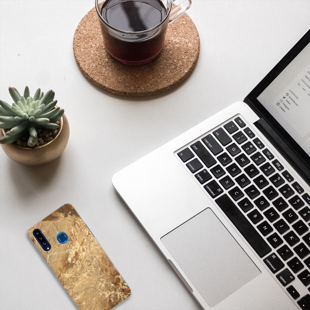 Dit design hoesje met Marmer in lichtbruine kleur is voor de artistiekelingen onder ons. De Grieken en Romeinen wisten het marmer al te waarderen door het in de bouw toe te passen. Naast het witte marmer zijn de diverse soorten marmer in een gevarieerde kleurensamenstelling te krijgen. We hebben verschillende mooie kleuren op design hoesjes gezet, zoals in dit geval het lichtbruine marmer. Dit is een Samsung Galaxy A20s TPU Siliconen Hoesje met marmer in lichtbruine kleur. Het marmer wordt bedrukt op de voorkant van een tpu case, die beschikt over opstaande randen aan de voorkant en heel goed combineert met een screenprotector van glas of van folie. Door de rijkdom aan kleuren en varianties in afwerking kunnen ontwerpers met marmer schitterende architectonische projecten realiseren. Wij hebben hetzelfde gedaan en onze ontwerper veel vrijheid geboden. Het resultaat zie je terug in deze tpu case met lichtbruin marmer, die jouw smartphone goed beschermt. De zijkanten van de case worden niet bedrukt met het lichtbruine marmer.