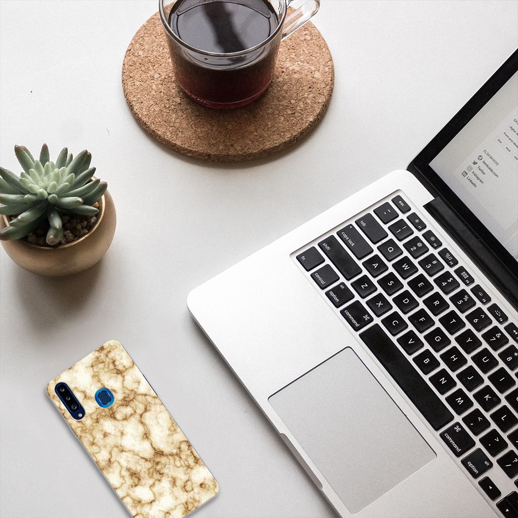 Deze Samsung Galaxy A20s TPU Siliconen Hoesje met Marmer Goud is het waard om een blokje voor om te rijden. Dit is overigens niet nodig. Als je het hoesje met goud marmer nu bestelt heb je het zeer snel in huis. Je kunt er bij wijze van spreken thuis op gaan zitten wachten. Je hebt diverse soorten marmer. We hebben enkele fraaie kleuren op onze hoesjes gezet, zoals in dit geval het gouden marmer. Het goud marmer wordt bedrukt op de achterkant van de tpu case, die beschikt over alle nodige uitsparingen waardoor je alle knoppen en poorten van je smartphone kunt bedienen. Verder is de case met goud marmer gemaakt van zeer flexibel materiaal. De rijkheid aan kleuren en varianties in afwerking is een schitterende eigenschap van marmer. Dit tpu hoesje met goud marmer heeft ook veel schitterende eigenschappen en is de ideale bescherming voor jouw smartphone.