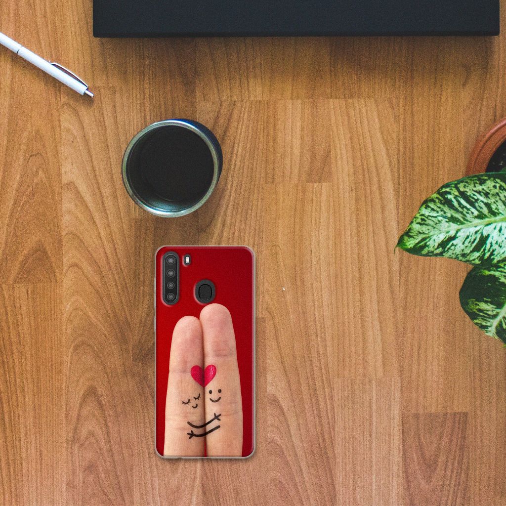 Mensen koesteren momenteel een enorme liefde voor hun smartphone. Ze tonen in veel gevallen zelfs meer genegenheid voor hun telefoon dan voor hun partner. Dag en nacht voelen we ons verbonden met onze smartphone. Vandaar dat je het apparaat ook goed moet beschermen. Een zeer goede manier om dat te doen is met een TPU case. We hebben op een Samsung Galaxy A21 Silicone Back Cover de Liefde afgebeeld. Hoe toepasselijk. Dit hoesje met print over liefde is gemaakt van zeer elastisch materiaal en heeft opstaande randen aan de voorzijde. Erg handig. Het scherm van jouw smartphone zal bij een val de grond niet raken. De zijden worden niet bedrukt met de liefdevolle print. Dit geldt wel voor de achterzijde. Dit hoesje met een fraai symbool van liefde past altijd in je broekzak.