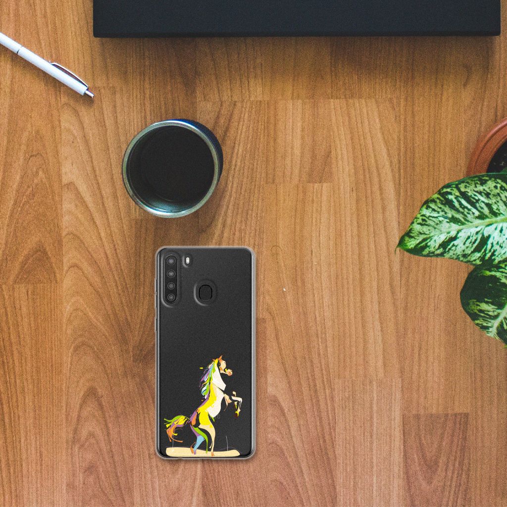 Ben je op zoek naar een uniek telefoonhoesje voor je Samsung Galaxy A21? Dan ben je bij B2C Telecom aan het juiste adres! Speciaal voor jou hebben we dit prachtige Horse Color design in onze collectie hoesjes opgenomen. Het design wordt bedrukt op een Telefoonhoesje met Naam en is gemaakt van flexibel rubber. Het design wordt alleen aan de bovenkant van het hoesje bedrukt en de randen blijven transparant. Aan de zijkanten zijn uitsparingen gemaakt waardoor je met gemak alle knoppen en poorten kunt bedienen. Wij adviseren om dit hoesje in combinatie met een screenprotector te gebruiken voor een langere levensduur van je telefoon. Wil je dit design hoesje nog iets extra's geven? Voeg dan gratis je naam of een quote toe! Is dit design hoesje toch niet helemaal wat je zocht? Ontwerp dan zelf een hoesje in ons ontwerpprogramma.