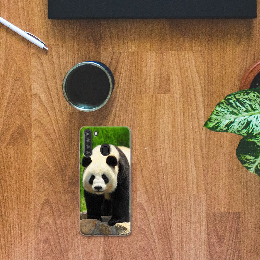 Ons design hoesje met afbeelding van een Panda is momenteel bijzonder populair. Wij denken te weten waarom dit zo is. De panda wordt door de bolle vorm van het gezicht in combinatie met de 'grote' zwarte ogen beschouwd als aandoenlijk en aaibaar. Dit maakt deze tpu case zeer geliefd onder zeer veel smartphonegebruikers. Een Samsung Galaxy A21 TPU Hoesje met panda is een zeer effectieve en handige bescherming van de smartphone. De achterzijde van de case wordt volledig bedrukt met panda, terwijl de zijkanten doorzichtig blijven. Wij zijn ervan overtuigd dat jij jezelf populair maakt met dit hoesje, waardoor je weinig pandapunten zult scoren. De flexibele tpu case is gemaakt van onbreekbaar en buigzaam materiaal, dat verreweg de meeste schokken en stoten probleemloos opvangt.