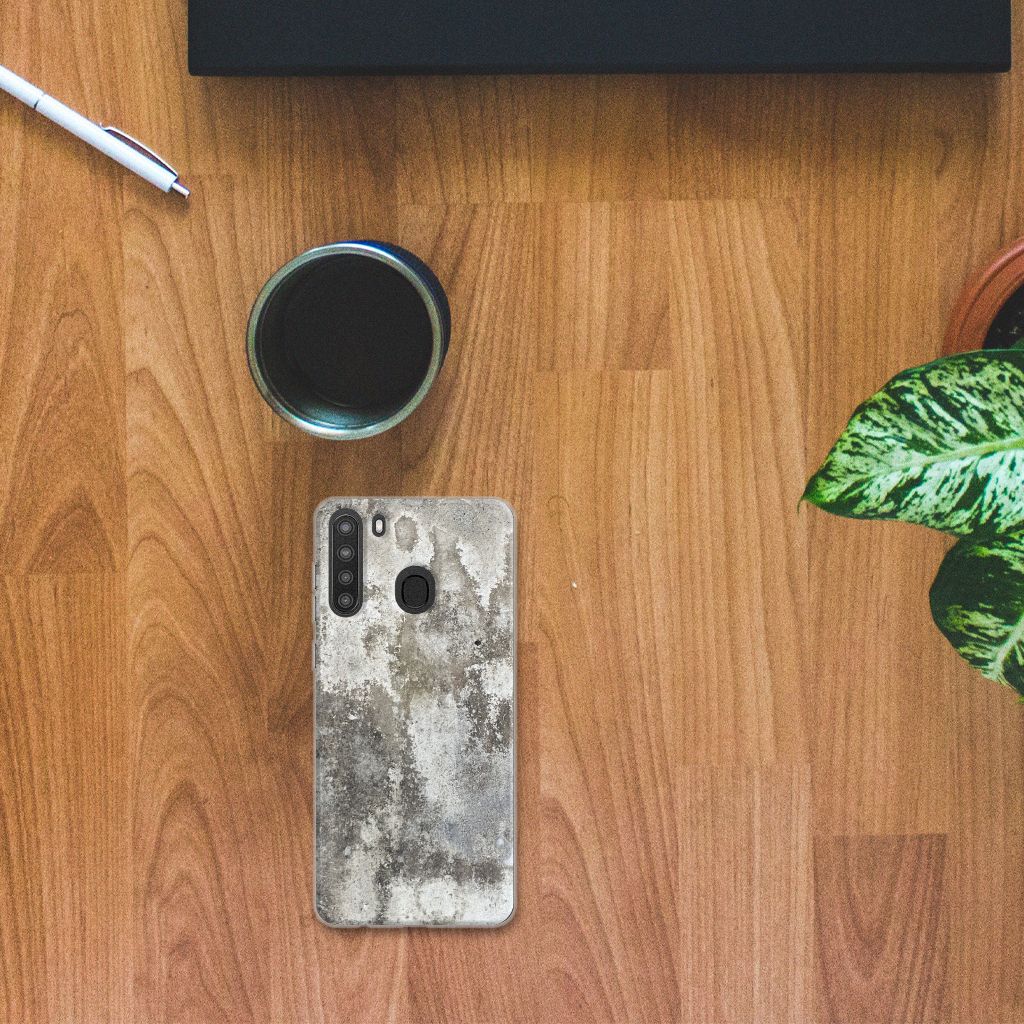 Dit stoere design is perfect voor iedereen die niet van tierlantijntjes houdt. Beton is een stoer materiaal dat tegenwoordig helemaal hip is in industriële interieurs. Maar ook op accessoires en nu dus ook op telefoonhoesjes is het helemaal on trend. Het hoesje heeft een realistische betonlook. Dit ontwerp staat op een TPU Siliconen Hoesje voor de Samsung Galaxy A21. TPU is een flexibel en onbreekbaar materiaal. Zo is je telefoon aan de achterkant en de randen heel goed beschermd. De case met het beton-design is aan de bovenkant bedrukt, de randen blijven transparant. Het TPU-hoesje is perfect te combineren met een screenprotector, zo zijn je telefoon en je beeldscherm perfect beschermd.