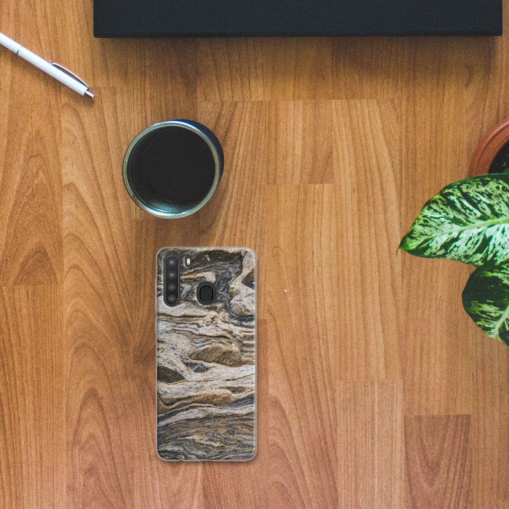 Samsung Galaxy A21 TPU Siliconen Hoesje Marmer Grijs