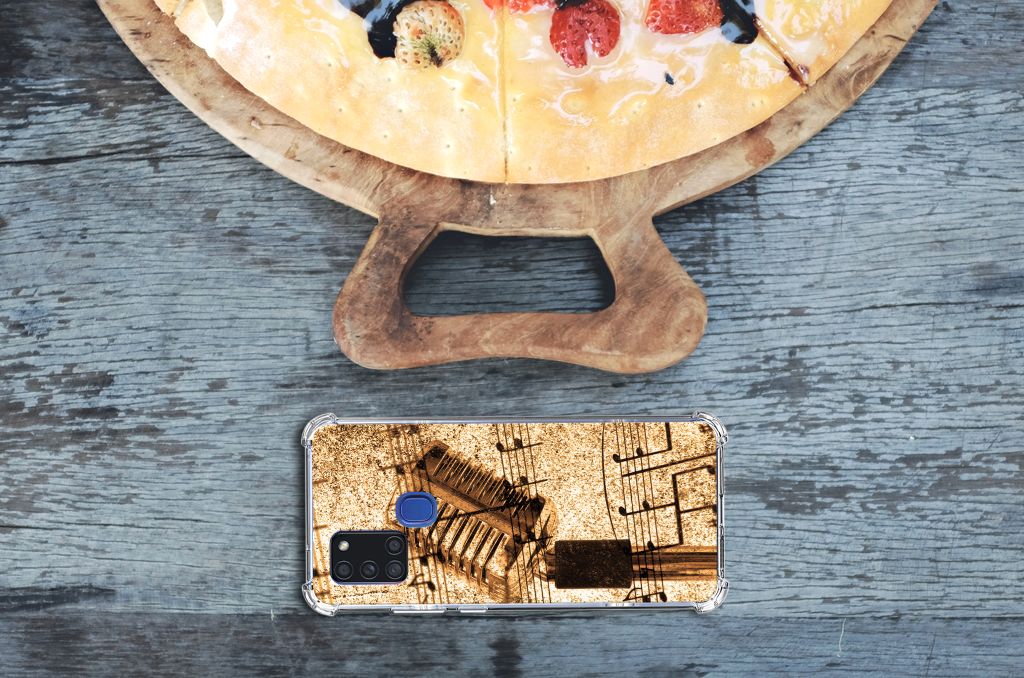 Ben je op zoek naar een uniek telefoonhoesje voor je Samsung Galaxy A21s? Dan ben je bij B2C Telecom aan het juiste adres! Speciaal voor jou hebben we dit prachtige Bladmuziek design in onze collectie hoesjes opgenomen. Het design wordt bedrukt op een Anti-shock Hoesje met foto en is gemaakt van flexibel rubber. Het hoesje is perfect voor de actieve smartphonegebruiker door de opstaande randen/hoeken. Denk aan mensen die veel sporten, reizen of wandelen en net iets meer zekerheid willen als het op hun geliefde telefoon aankomt. Het design wordt alleen aan de bovenkant van het hoesje bedrukt en de randen blijven transparant. Aan de zijkanten zijn uitsparingen gemaakt waardoor je met gemak alle knoppen en poorten kunt bedienen. Wij adviseren om dit hoesje in combinatie met een screenprotector te gebruiken voor een langere levensduur van je telefoon. Wil je dit hoesje nog iets extra's geven? Voeg dan gratis je naam of een quote toe! Is dit design hoesje toch niet helemaal wat je zocht? Ontwerp dan zelf een hoesje in ons ontwerpprogramma.