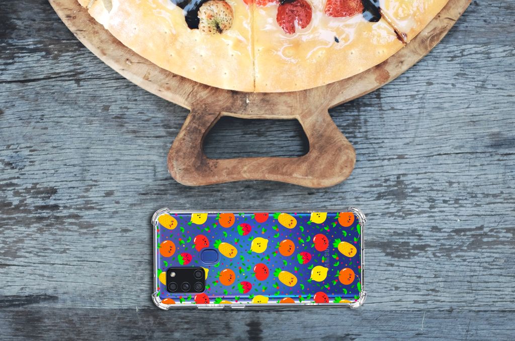 Ben je op zoek naar een uniek telefoonhoesje voor je Samsung Galaxy A21s? Dan ben je bij B2C Telecom aan het juiste adres! Speciaal voor jou hebben we dit prachtige Fruits design in onze collectie hoesjes opgenomen. Het design wordt bedrukt op een Beschermhoes en is gemaakt van flexibel rubber. Het hoesje is perfect voor de actieve smartphonegebruiker door de opstaande randen/hoeken. Denk aan mensen die veel sporten, reizen of wandelen en net iets meer zekerheid willen als het op hun geliefde telefoon aankomt. Het design wordt alleen aan de bovenkant van het hoesje bedrukt en de randen blijven transparant. Aan de zijkanten zijn uitsparingen gemaakt waardoor je met gemak alle knoppen en poorten kunt bedienen. Wij adviseren om dit hoesje in combinatie met een screenprotector te gebruiken voor een langere levensduur van je telefoon. Wil je dit hoesje nog iets extra's geven? Voeg dan gratis je naam of een quote toe! Is dit design hoesje toch niet helemaal wat je zocht? Ontwerp dan zelf een hoesje in ons ontwerpprogramma.