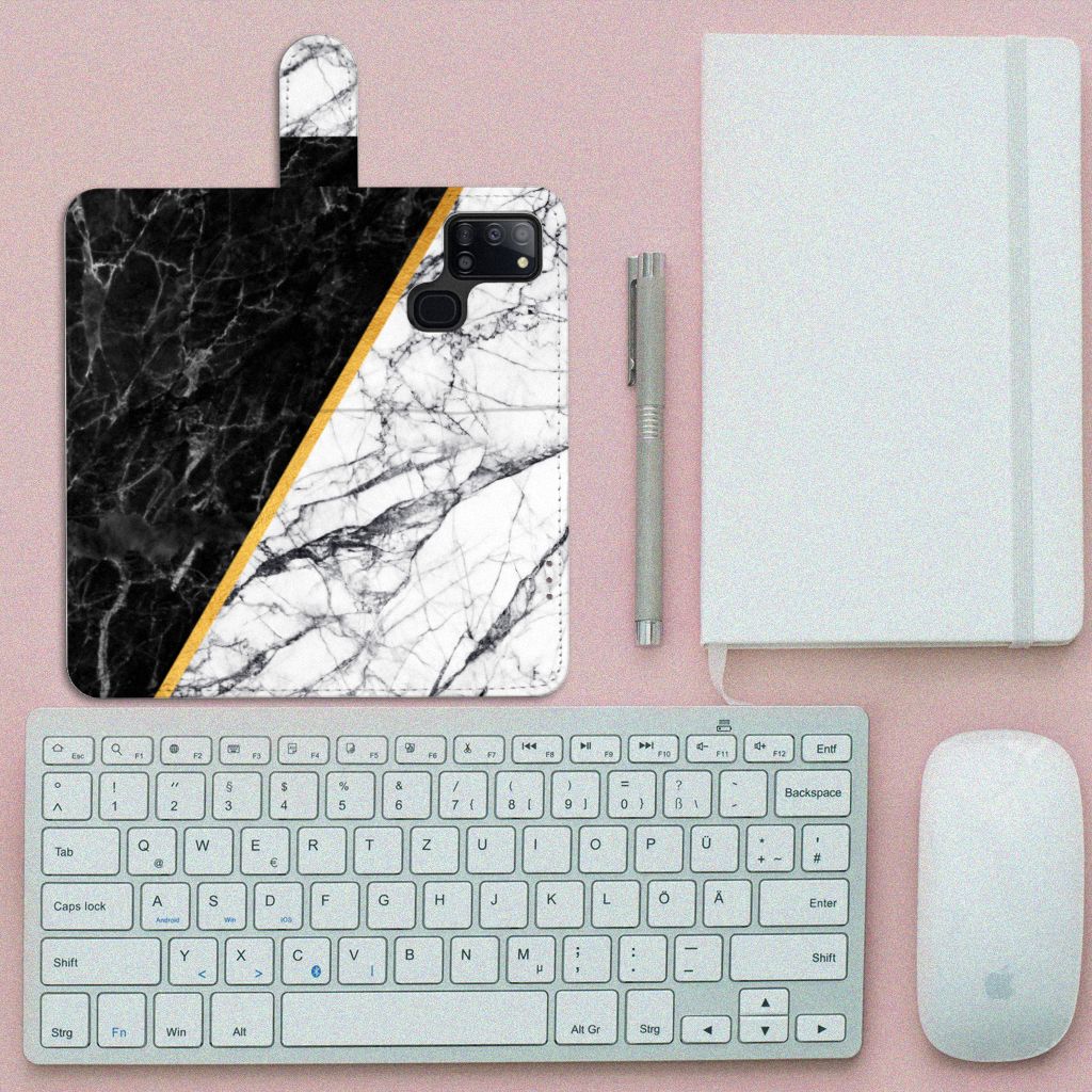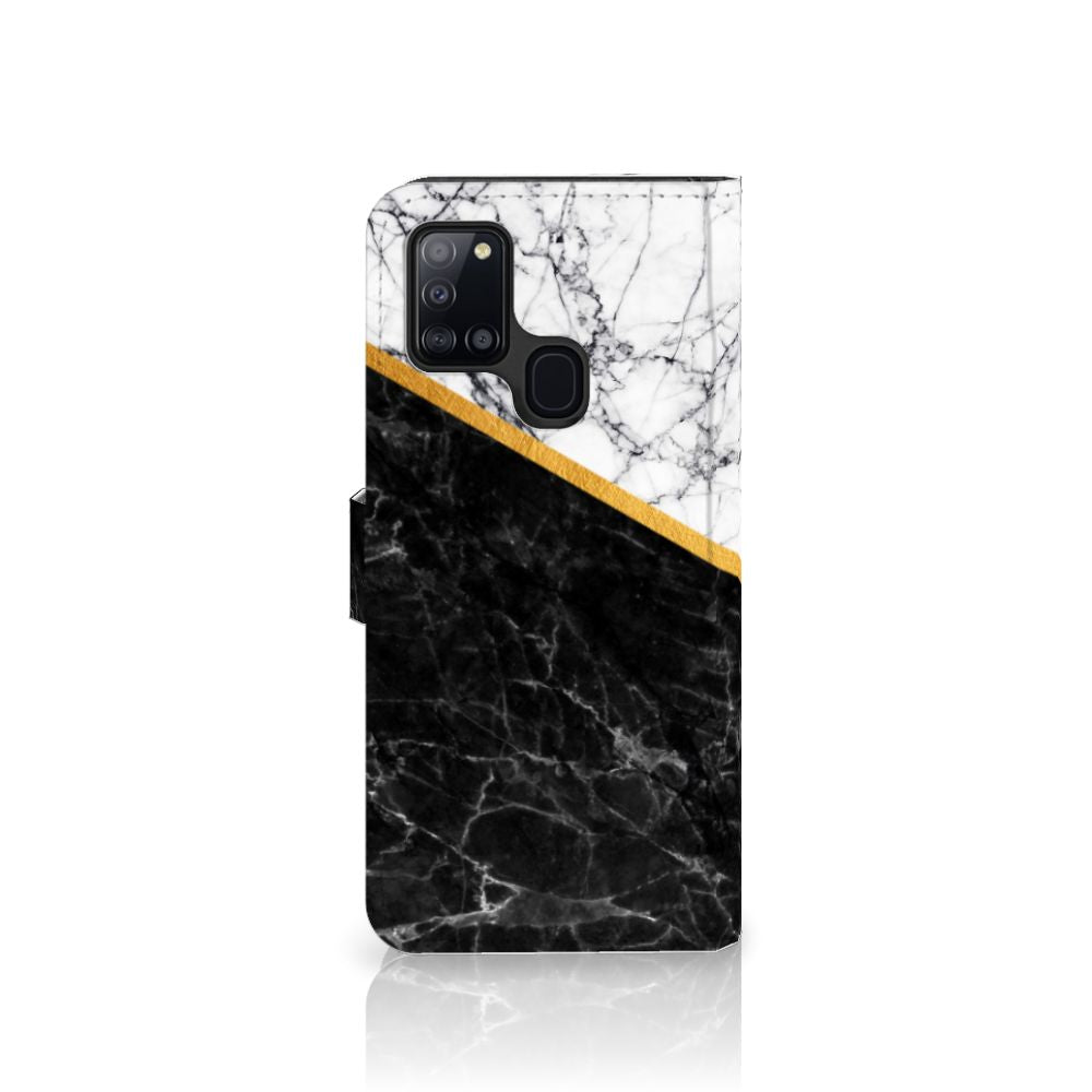 Bookcase Samsung Galaxy A21s Marmer Wit Zwart