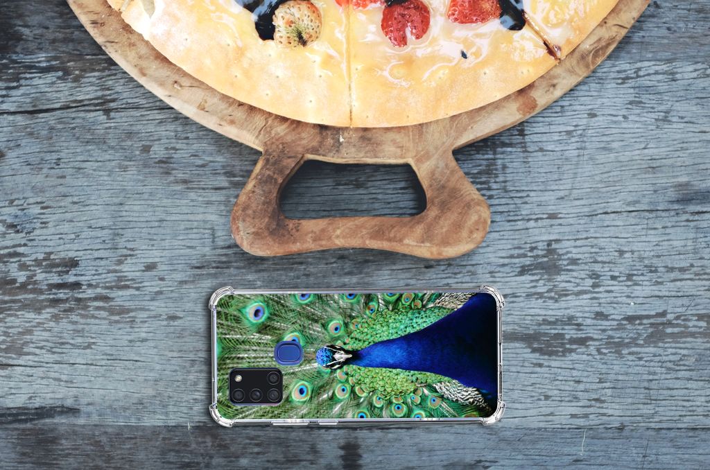 Ben je op zoek naar een uniek telefoonhoesje voor je Samsung Galaxy A21s? Dan ben je bij B2C Telecom aan het juiste adres! Speciaal voor jou hebben we dit prachtige Pauw in onze collectie hoesjes opgenomen. Het design wordt bedrukt op een Case Anti-shock en is gemaakt van flexibel rubber. Het hoesje is perfect voor de actieve smartphonegebruiker door de opstaande randen/hoeken. Denk aan mensen die veel sporten, reizen of wandelen en net iets meer zekerheid willen als het op hun geliefde telefoon aankomt. Het design wordt alleen aan de bovenkant van het hoesje bedrukt en de randen blijven transparant. Aan de zijkanten zijn uitsparingen gemaakt waardoor je met gemak alle knoppen en poorten kunt bedienen. Wij adviseren om dit hoesje in combinatie met een screenprotector te gebruiken voor een langere levensduur van je telefoon. Wil je dit hoesje nog iets extra's geven? Voeg dan gratis je naam of een quote toe! Is dit design hoesje toch niet helemaal wat je zocht? Ontwerp dan zelf een hoesje in ons ontwerpprogramma.