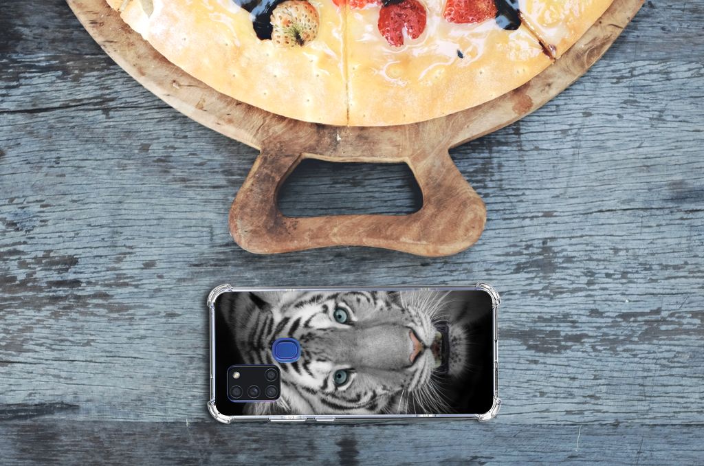 Ben je op zoek naar een uniek telefoonhoesje voor je Samsung Galaxy A21s? Dan ben je bij B2C Telecom aan het juiste adres! Speciaal voor jou hebben we dit prachtige Tijger design in onze collectie hoesjes opgenomen. Het design wordt bedrukt op een Case Anti-shock en is gemaakt van flexibel rubber. Het hoesje is perfect voor de actieve smartphonegebruiker door de opstaande randen/hoeken. Denk aan mensen die veel sporten, reizen of wandelen en net iets meer zekerheid willen als het op hun geliefde telefoon aankomt. Het design wordt alleen aan de bovenkant van het hoesje bedrukt en de randen blijven transparant. Aan de zijkanten zijn uitsparingen gemaakt waardoor je met gemak alle knoppen en poorten kunt bedienen. Wij adviseren om dit hoesje in combinatie met een screenprotector te gebruiken voor een langere levensduur van je telefoon. Wil je dit hoesje nog iets extra's geven? Voeg dan gratis je naam of een quote toe! Is dit design hoesje toch niet helemaal wat je zocht? Ontwerp dan zelf een hoesje in ons ontwerpprogramma.