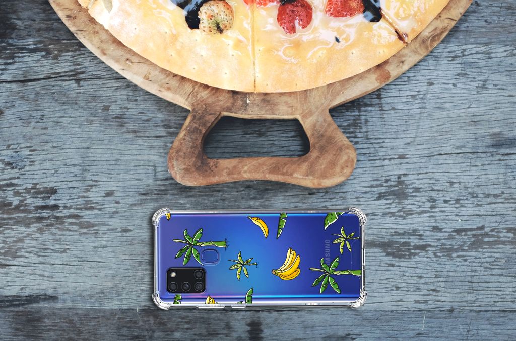 Ben je op zoek naar een uniek telefoonhoesje voor je Samsung Galaxy A21s? Dan ben je bij B2C Telecom aan het juiste adres! Speciaal voor jou hebben we dit prachtige Banana Tree design in onze collectie hoesjes opgenomen. Het design wordt bedrukt op een Case en is gemaakt van flexibel rubber. Het hoesje is perfect voor de actieve smartphonegebruiker door de opstaande randen/hoeken. Denk aan mensen die veel sporten, reizen of wandelen en net iets meer zekerheid willen als het op hun geliefde telefoon aankomt. Het design wordt alleen aan de bovenkant van het hoesje bedrukt en de randen blijven transparant. Aan de zijkanten zijn uitsparingen gemaakt waardoor je met gemak alle knoppen en poorten kunt bedienen. Wij adviseren om dit hoesje in combinatie met een screenprotector te gebruiken voor een langere levensduur van je telefoon. Wil je dit hoesje nog iets extra's geven? Voeg dan gratis je naam of een quote toe! Is dit design hoesje toch niet helemaal wat je zocht? Ontwerp dan zelf een hoesje in ons ontwerpprogramma.