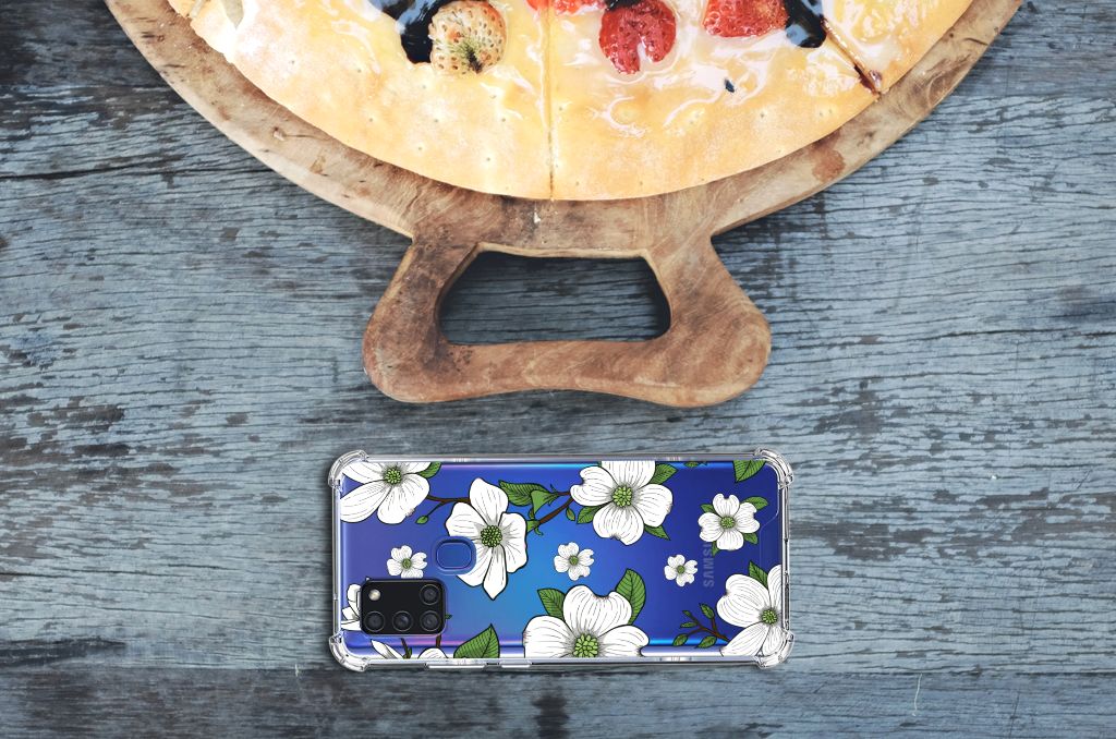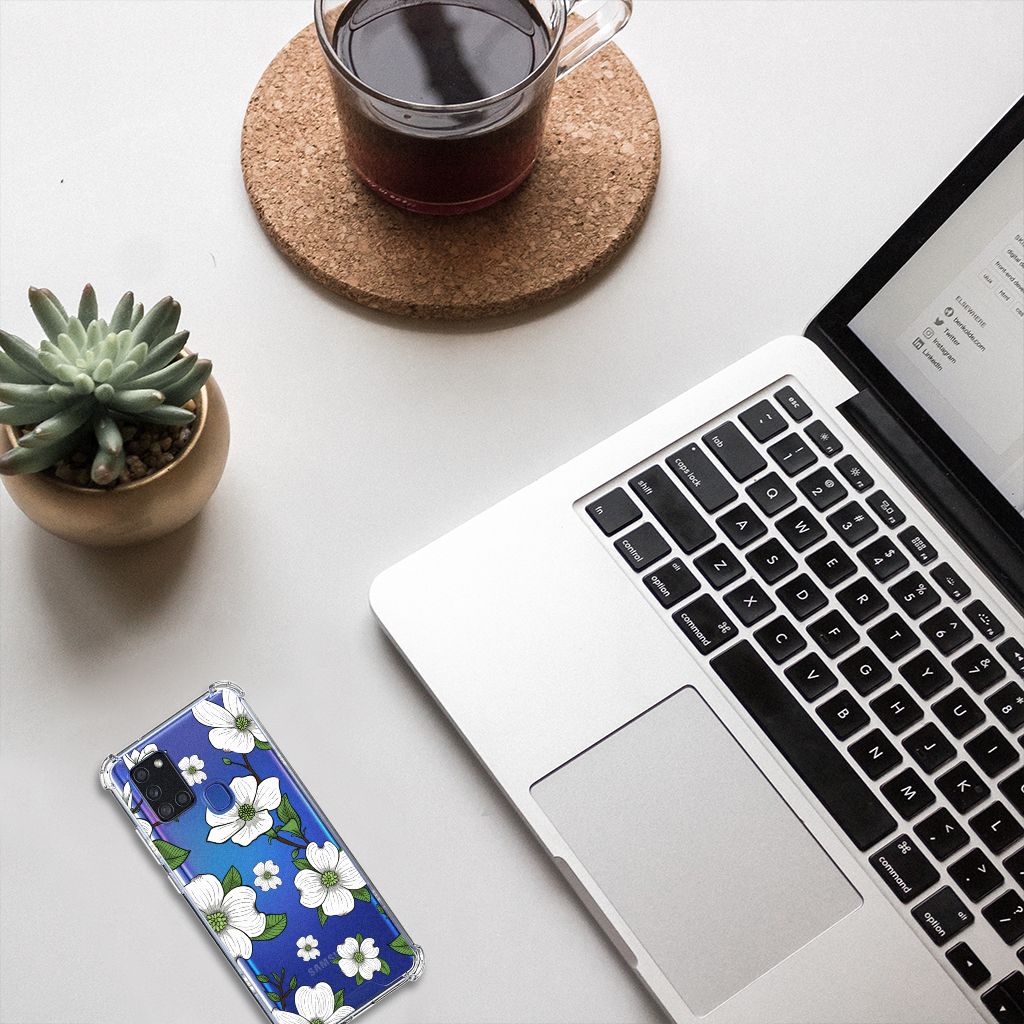 Ben je op zoek naar een uniek telefoonhoesje voor je Samsung Galaxy A21s? Dan ben je bij B2C Telecom aan het juiste adres! Speciaal voor jou hebben we dit prachtige Dogwood Flowers design in onze collectie hoesjes opgenomen. Het design wordt bedrukt op een Case en is gemaakt van flexibel rubber. Het hoesje is perfect voor de actieve smartphonegebruiker door de opstaande randen/hoeken. Denk aan mensen die veel sporten, reizen of wandelen en net iets meer zekerheid willen als het op hun geliefde telefoon aankomt. Het design wordt alleen aan de bovenkant van het hoesje bedrukt en de randen blijven transparant. Aan de zijkanten zijn uitsparingen gemaakt waardoor je met gemak alle knoppen en poorten kunt bedienen. Wij adviseren om dit hoesje in combinatie met een screenprotector te gebruiken voor een langere levensduur van je telefoon. Wil je dit hoesje nog iets extra's geven? Voeg dan gratis je naam of een quote toe! Is dit design hoesje toch niet helemaal wat je zocht? Ontwerp dan zelf een hoesje in ons ontwerpprogramma.