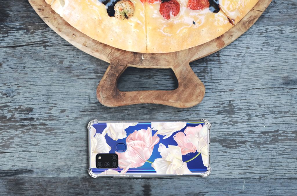 Ben je op zoek naar een uniek telefoonhoesje voor je Samsung Galaxy A21s? Dan ben je bij B2C Telecom aan het juiste adres! Speciaal voor jou hebben we dit prachtige Lovely Flowers design in onze collectie hoesjes opgenomen. Het design wordt bedrukt op een Case en is gemaakt van flexibel rubber. Het hoesje is perfect voor de actieve smartphonegebruiker door de opstaande randen/hoeken. Denk aan mensen die veel sporten, reizen of wandelen en net iets meer zekerheid willen als het op hun geliefde telefoon aankomt. Het design wordt alleen aan de bovenkant van het hoesje bedrukt en de randen blijven transparant. Aan de zijkanten zijn uitsparingen gemaakt waardoor je met gemak alle knoppen en poorten kunt bedienen. Wij adviseren om dit hoesje in combinatie met een screenprotector te gebruiken voor een langere levensduur van je telefoon. Wil je dit hoesje nog iets extra's geven? Voeg dan gratis je naam of een quote toe! Is dit design hoesje toch niet helemaal wat je zocht? Ontwerp dan zelf een hoesje in ons ontwerpprogramma.