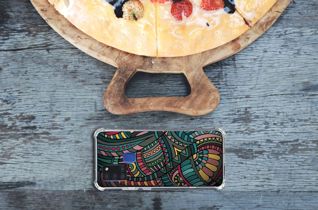 Ben je op zoek naar een uniek telefoonhoesje voor je Samsung Galaxy A21s? Dan ben je bij B2C Telecom aan het juiste adres! Speciaal voor jou hebben we dit prachtige Aztec design in onze collectie hoesjes opgenomen. Het design wordt bedrukt op een Doorzichtige Silicone Hoesje en is gemaakt van flexibel rubber. Het hoesje is perfect voor de actieve smartphonegebruiker door de opstaande randen/hoeken. Denk aan mensen die veel sporten, reizen of wandelen en net iets meer zekerheid willen als het op hun geliefde telefoon aankomt. Het design wordt alleen aan de bovenkant van het hoesje bedrukt en de randen blijven transparant. Aan de zijkanten zijn uitsparingen gemaakt waardoor je met gemak alle knoppen en poorten kunt bedienen. Wij adviseren om dit hoesje in combinatie met een screenprotector te gebruiken voor een langere levensduur van je telefoon. Wil je dit hoesje nog iets extra's geven? Voeg dan gratis je naam of een quote toe! Is dit design hoesje toch niet helemaal wat je zocht? Ontwerp dan zelf een hoesje in ons ontwerpprogramma.