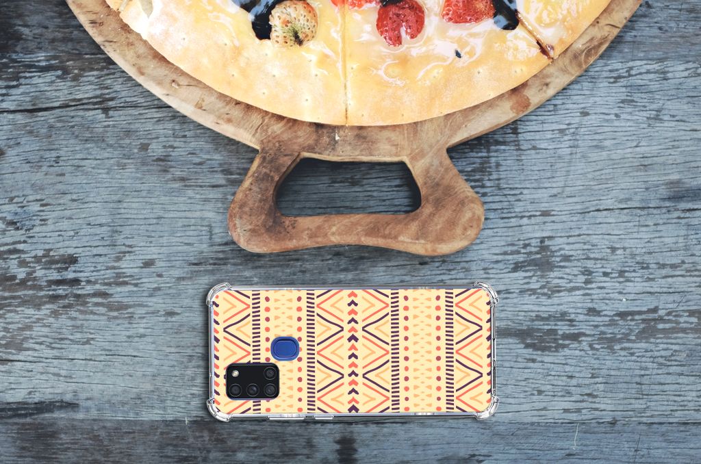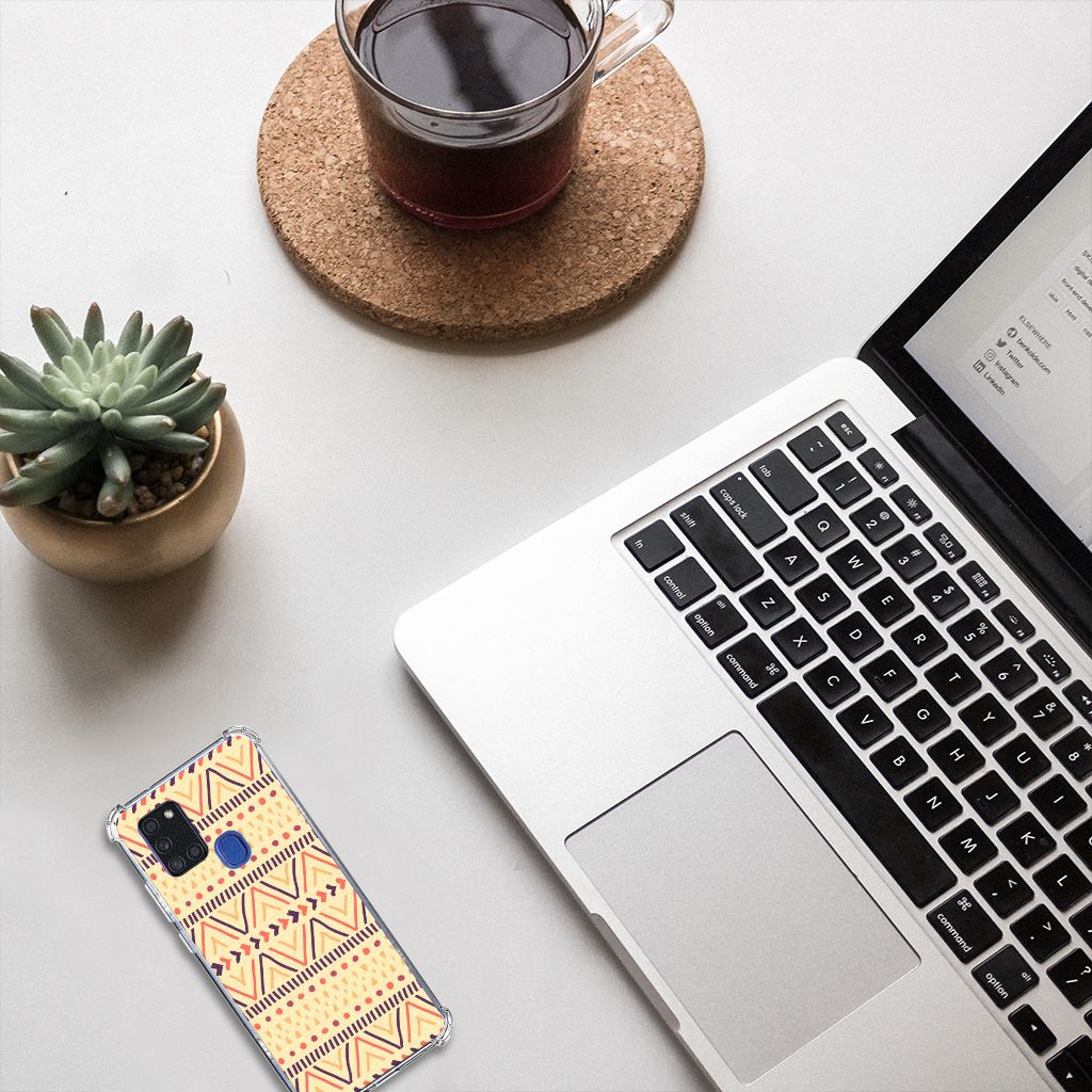 Ben je op zoek naar een uniek telefoonhoesje voor je Samsung Galaxy A21s? Dan ben je bij B2C Telecom aan het juiste adres! Speciaal voor jou hebben we dit prachtige Aztec Yellow design in onze collectie hoesjes opgenomen. Het design wordt bedrukt op een Doorzichtige Silicone Hoesje en is gemaakt van flexibel rubber. Het hoesje is perfect voor de actieve smartphonegebruiker door de opstaande randen/hoeken. Denk aan mensen die veel sporten, reizen of wandelen en net iets meer zekerheid willen als het op hun geliefde telefoon aankomt. Het design wordt alleen aan de bovenkant van het hoesje bedrukt en de randen blijven transparant. Aan de zijkanten zijn uitsparingen gemaakt waardoor je met gemak alle knoppen en poorten kunt bedienen. Wij adviseren om dit hoesje in combinatie met een screenprotector te gebruiken voor een langere levensduur van je telefoon. Wil je dit hoesje nog iets extra's geven? Voeg dan gratis je naam of een quote toe! Is dit design hoesje toch niet helemaal wat je zocht? Ontwerp dan zelf een hoesje in ons ontwerpprogramma.
