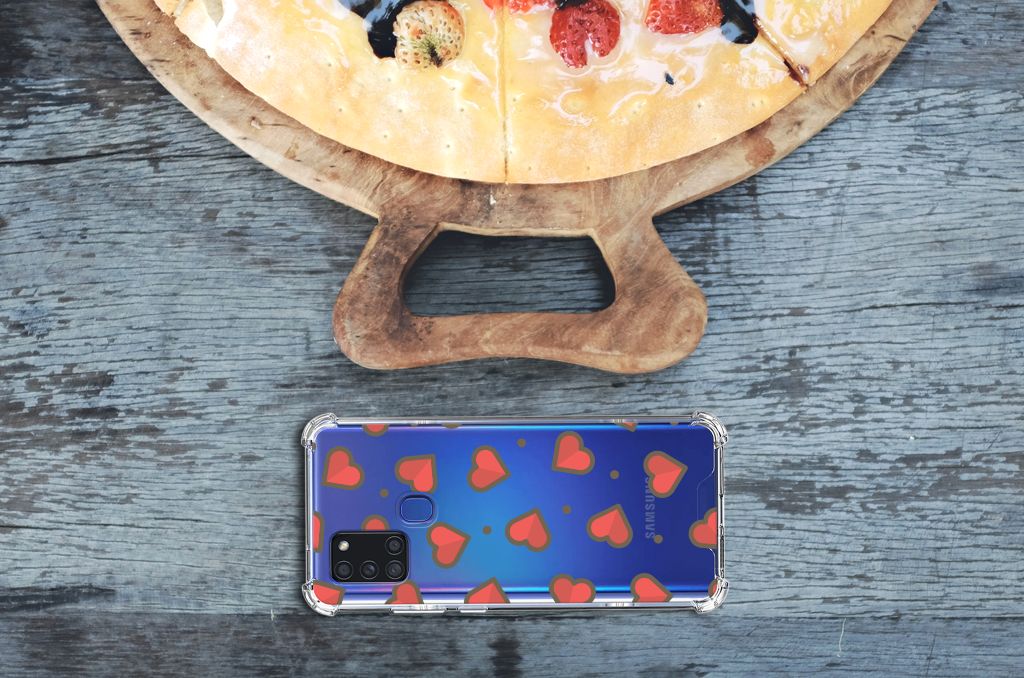 Ben je op zoek naar een uniek telefoonhoesje voor je Samsung Galaxy A21s? Dan ben je bij B2C Telecom aan het juiste adres! Speciaal voor jou hebben we dit prachtige Hearts design in onze collectie hoesjes opgenomen. Het design wordt bedrukt op een Doorzichtige Silicone Hoesje en is gemaakt van flexibel rubber. Het hoesje is perfect voor de actieve smartphonegebruiker door de opstaande randen/hoeken. Denk aan mensen die veel sporten, reizen of wandelen en net iets meer zekerheid willen als het op hun geliefde telefoon aankomt. Het design wordt alleen aan de bovenkant van het hoesje bedrukt en de randen blijven transparant. Aan de zijkanten zijn uitsparingen gemaakt waardoor je met gemak alle knoppen en poorten kunt bedienen. Wij adviseren om dit hoesje in combinatie met een screenprotector te gebruiken voor een langere levensduur van je telefoon. Wil je dit hoesje nog iets extra's geven? Voeg dan gratis je naam of een quote toe! Is dit design hoesje toch niet helemaal wat je zocht? Ontwerp dan zelf een hoesje in ons ontwerpprogramma.