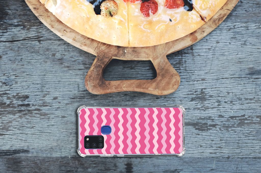 Ben je op zoek naar een uniek telefoonhoesje voor je Samsung Galaxy A21s? Dan ben je bij B2C Telecom aan het juiste adres! Speciaal voor jou hebben we dit prachtige Waves Pink design in onze collectie hoesjes opgenomen. Het design wordt bedrukt op een Doorzichtige Silicone Hoesje en is gemaakt van flexibel rubber. Het hoesje is perfect voor de actieve smartphonegebruiker door de opstaande randen/hoeken. Denk aan mensen die veel sporten, reizen of wandelen en net iets meer zekerheid willen als het op hun geliefde telefoon aankomt. Het design wordt alleen aan de bovenkant van het hoesje bedrukt en de randen blijven transparant. Aan de zijkanten zijn uitsparingen gemaakt waardoor je met gemak alle knoppen en poorten kunt bedienen. Wij adviseren om dit hoesje in combinatie met een screenprotector te gebruiken voor een langere levensduur van je telefoon. Wil je dit hoesje nog iets extra's geven? Voeg dan gratis je naam of een quote toe! Is dit design hoesje toch niet helemaal wat je zocht? Ontwerp dan zelf een hoesje in ons ontwerpprogramma.