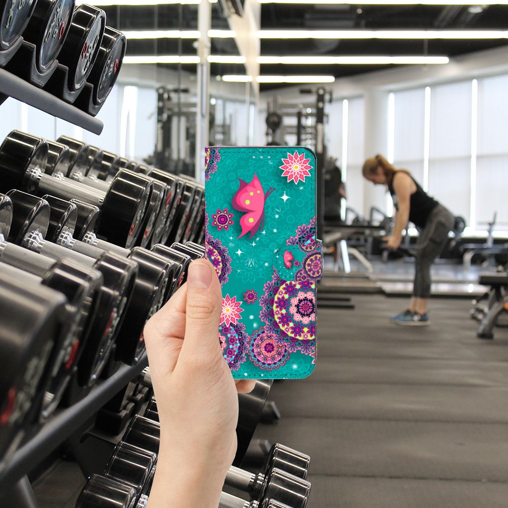 Met deze bookstyle case val jij sowieso op. De vlinders en mandala-achtige cirkels hebben verschillende heldere en opvallende kleuren. Het design op dit Samsung Galaxy A21s Hoesje heeft bovendien iets hippie-achtigs. De heldere kleuren en patronen worden op dit telefoonhoesje met behulp van onze geavanceerde printer gedrukt. Deze printer kan alle zijden van de bookstyle case bedrukken. Zelfs het magnetische lipje wordt bedrukt met het design van cirkels en vlinders. Dit wordt bovendien uitgevoerd met duurzame inkt, zodat het hele hoesje duurzaam is. Deze bookstyle case zal langer meegaan dan de meeste design hoesjes. Dit is goed voor het milieu en voor jouw portemonnee.
