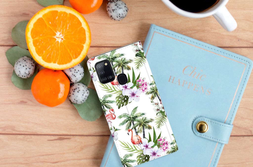 Een Samsung Galaxy A21s Hoesje maken met Flamingo Palms is in vele opzichten bijzonder. De rode flamingo op het hoesje kent zijn oorsprong in het Caraïbische gebied. Stel dat je in deze regio vakantie aan het vieren bent, dan val je zonder meer op met dit hoesje met flamingo’s en palmbomen. Dit hoesje biedt bescherming voor alle zijden van je telefoon. Jouw apparaat ligt goed opgeborgen in de TPU houder aan de binnenzijde en de buitenkant van het hoesje met flamingo’s en palmbomen heeft een magnetische sluiting. Ook de palmbomen op deze stand case geven jou natuurlijk een ultiem vakantiegevoel. Het stand hoesje met flamingo’s en palmbomen heeft een vakje voor pasjes en een standaard en is op maat gemaakt.