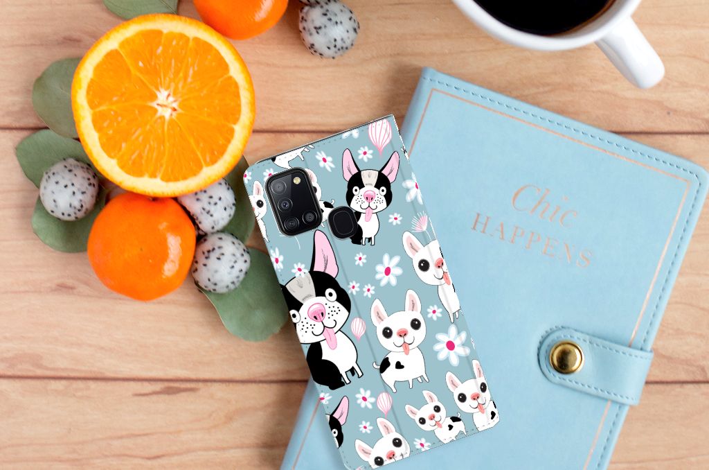 De Hondjes op deze Samsung Galaxy A21s Hoesje maken ogen zeer aandoenlijk. Deze hondjes met zwart-witte vacht willen jou zelfs bijna in je armen springen, zo blij zijn ze dat ze op dit design zijn gezet. Het stand hoesje is momenteel onze populairste smartphone case. Dit hoesje met zwarte en witte hondjes is niet alleen zeer praktisch vanwege de standaard en de houder voor een pasje, maar beschermt je smartphone ook nog eens optimaal. Op alle zijden van de stand case, die aan de binnenzijde wordt afgesloten met een magneet, staan de vrolijke hondjes. Veel Nederlanders hebben momenteel een hond als huisdier. Honden zijn dus erg populair. Net als deze stand case, die wel eens het ideale cadeautje zou kunnen zijn voor jouw vriendin of dochter. De case is aan de binnenzijde voorzien van een houder van TPU.