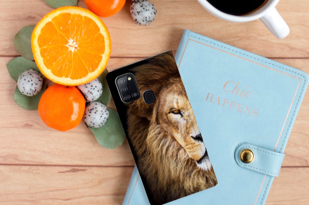 We hebben een grote verzameling katten op onze hoesjes staan, waarvan de leeuw na de tijger de grootste is. De Leeuw op het design hoesje ziet er door de indrukwekkende manen bijzonder krachtig uit. De kracht straalt ook af op deze Samsung Galaxy A21s Hoesje maken, die jouw smartphone aan alle zijden perfect beschermt. De magnetische sluiting aan de binnenkant is bijzonder handig en nuttig. Rond het begin van de jaartelling had de leeuw een veel grotere verspreiding dan nu. De afgelopen 20 jaar is het aantal leeuwen met 30 tot 50% afgenomen. Zonde natuurlijk. Dit design hoesje met leeuw zal in elk geval nooit verloren gaan. De print op deze case is zeer duurzaam. Jouw smartphone past perfect in de houder van TPU aan de binnenzijde, waarin je ook een pasje kunt stoppen. Verder heeft de case een standaard.