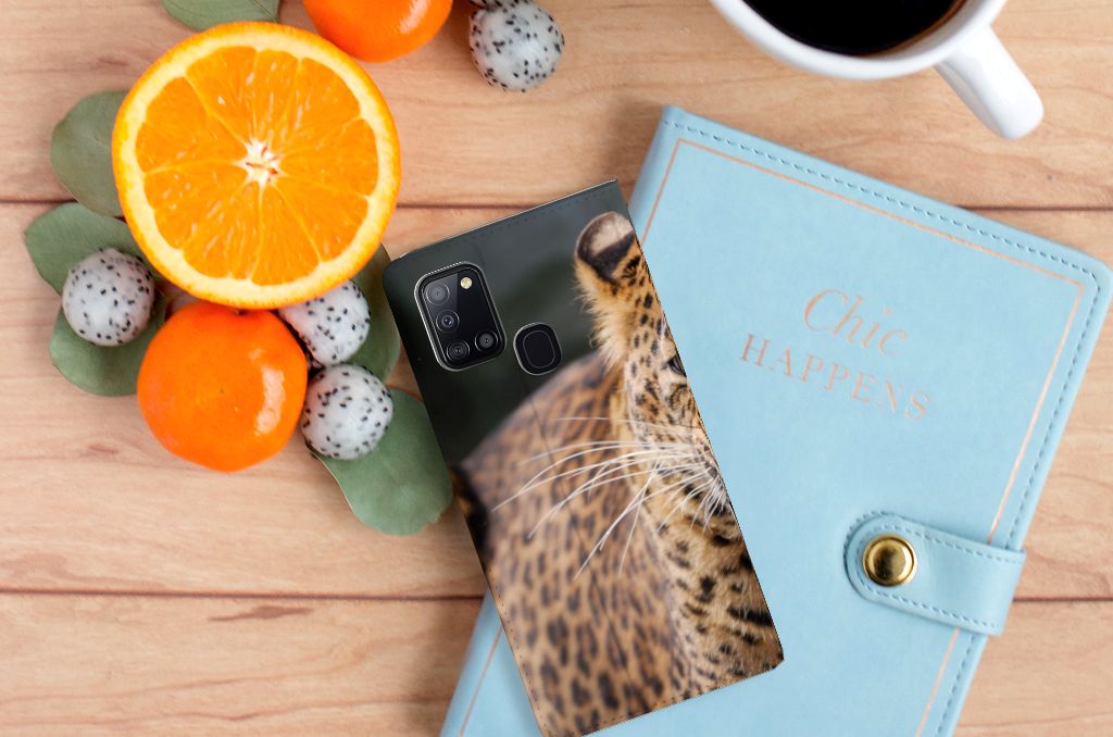 Het luipaard wordt ook wel een panter genoemd en is een sluwe kat. De bruingele vacht met een patroon van rozetachtige vlekken geeft een goede schutkleur. Dit zie je ook op een fraaie manier afgebeeld op dit super stoere hoesje. Mensen die indruk willen maken kopen deze stand case met design van het luipaard. Een Samsung Galaxy A21s Hoesje maken is van alle markten thuis. Het is praktisch – vanwege onder meer het opbergvakje en de magnetische sluiting aan de binnenzijde – maar beschermt jouw smartphone tevens beter dan welke case ook. Het luipaard is sterk en behendig en misschien typeert jou dat ook wel. Dan past dit hoesje met luipaard uitstekend bij jou. De houder van TPU aan de binnenzijde is net zo sterk als het luipaard. Jouw telefoon is perfect beschermd. De case heeft tevens een standaard.