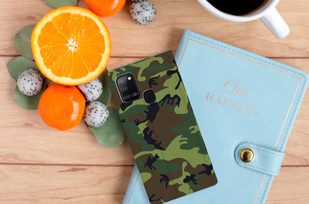 Voel je jezelf verbonden met het leger, dan zal deze Samsung Galaxy A21s Hoesje met Magneet je zeker bevallen. Het design hoesje beschikt namelijk over donkere camouflage kleuren. Deze worden vaak gebruikt door mensen die zich graag willen mengen in hun omgeving. Dit Army Dark hoesje is er dus voornamelijk in kleuren die in de natuur voorkomen, zodat je één wordt met je achtergrond. Beschermt de krijgsmacht volk en vaderland, dit hoesje in donkere camouflage kleuren zal jouw telefoon onder alle omstandigheden schadevrij houden. Met een hoesje in dit soort kleuren zal je niet zo snel opvallen. Wel is het echter een hele stoere case. Het design staat op een stand case. Deze case beschermt jouw telefoon aan alle kanten en beschikt over een 1 opbergvakje en een speciale standaard. Het hoesje wordt afgesloten met een magneet aan de binnenzijde. De houder aan de binnenzijde is van TPU. Alle zijden van de case worden bedrukt met donkere camouflage kleuren.