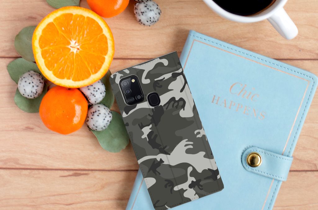 Heb je veel respect voor het leger, dan zal dit telefoonhoesje je zeker bevallen. De Samsung Galaxy A21s Hoesje met Magneet beschikt namelijk over een Army Light print. Camouflage kleding wordt vaak gedragen door mensen die zich graag willen mengen in of met hun omgeving. Dit donkere camouflage hoesje is er dan ook voornamelijk in kleuren die in de natuur voorkomen, zodat je één wordt met je achtergrond. Het design staat op een stand case. Deze stand case beschermt jouw telefoon aan alle kanten en beschikt over een 1 opbergvakje en een speciale standaard. Het donkere hoesje wordt afgesloten met een magneet aan de binnenzijde. De houder aan de binnenzijde is van TPU. Alle zijden van het hoesje worden bedrukt. Beschermt het leger volk en vaderland, dit hoesje in donkere camouflage kleuren zal jouw telefoon onder alle omstandigheden schadevrij houden. Met een leger hoesje in dit soort kleuren zal je niet zo snel opvallen, maar waarschijnlijk ben je daar ook niet naar op zoek. Wel is het een hele stoere stand case.