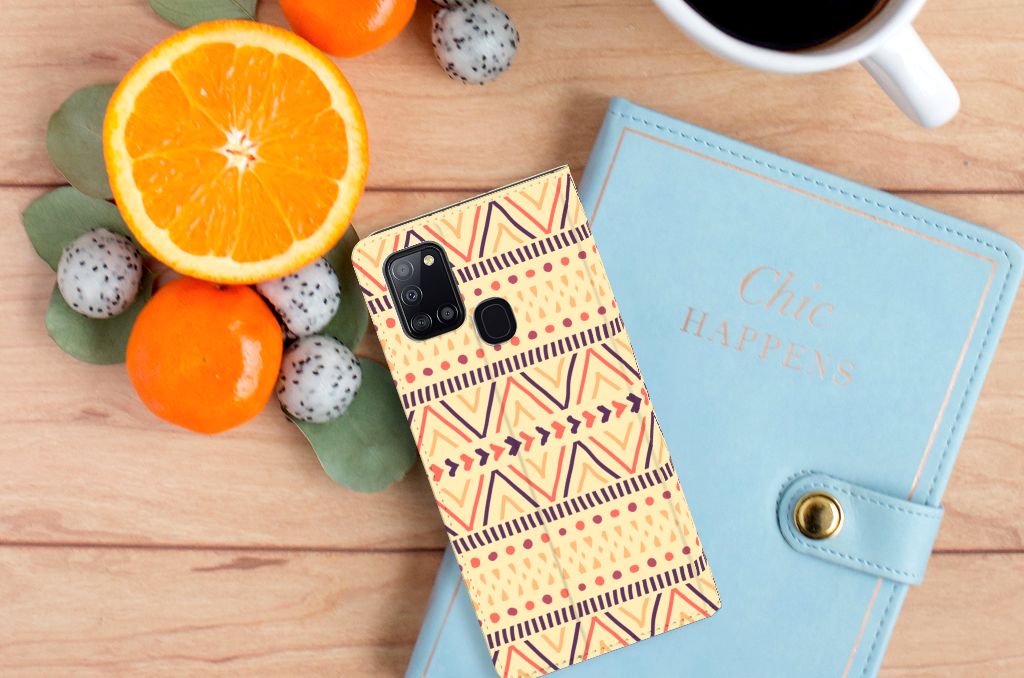 De Azteken leefden tussen 1200 en 1521 in het huidige Mexico. De mooie Aztec-patronen waar zij bekend om stonden, zien we nu nog op kleding, stoffen en tassen. Wie had toen kunnen bedenken dat we diezelfde prints honderden jaren later zelfs op een telefoonhoesje zouden vinden? Deze Hoesje met Magneet voor de Samsung Galaxy A21s is perfect voor iedereen die een stukje geschiedenis bij zich wil dragen maar ook gewoon een mooi en kleurrijk patroon op zijn hoesje wil. Dit populaire smartphonehoesje heeft één vakje en is aan alle zijden bedrukt met de Aztec Yellow-print. Met de standcase zet je je telefoon gemakkelijk neer, zodat je je handen vrij hebt als je bijvoorbeeld filmpjes bekijkt.
