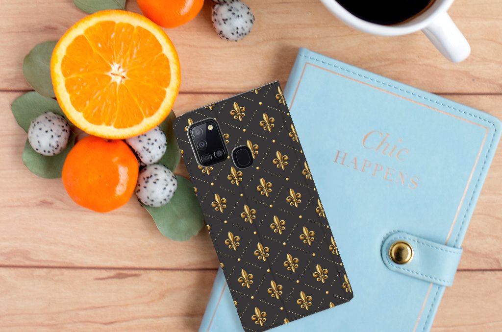 Hét symbool van het Franse koningshuis, de fleur-de-lis (ook fleur-de-lys of Franse lelie), mag natuurlijk niet ontbreken in onze collectie design hoesjes. De naam betekent letterlijk lelie-bloem. Deze Franse Lelie kunnen we op verschillende soorten cases printen, zoals een zeer praktische en onderscheidende stand case. Een Samsung Galaxy A21s Hoesje met Magneet met Franse Lelie ziet er niet alleen ontzettend chique uit, het is dankzij onder meer het opbergvakje aan de binnenzijde en de standaard zeer praktisch. Het is niet helemaal duidelijk welke bloem model heeft gestaan voor het Franse symbool. Wel is duidelijk dat de Franse lelie volledig tot wasdom komt op deze handige stand case. Het beschikt verder over een houder van tpu en een magnetische sluiting aan de binnenkant. We bedrukken de case op het moment dat jij deze bestelt.