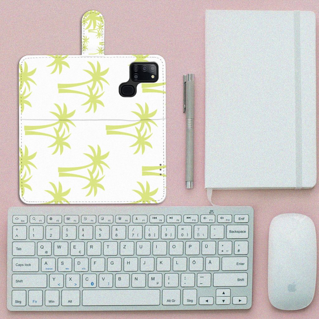 Je krijgt direct een vakantiegevoel als je kiest voor een Samsung Galaxy A21s Hoesje met opdruk van lichtgroene Palmtrees. Sommige mensen hebben ook een palmboom in hun tuin staan, wij kunnen er meerdere op een boekhoesje zetten. Jouw smartphone is op en top beschermd met een boekhoesje met lichtgroene palmbomen tegen een witgrijze achtergrond. Het boekhoesje met lichtgroene palmbomen tegen een witgrijze achtergrond heeft meerdere vakjes aan de binnenzijde en een magnetische sluitclip aan de buitenkant. Dit boekhoesje met lichtgroene palmbomen beschermt jouw telefoon aan alle zijden. De houder van TPU aan de binnenzijde is zeer flexibel.