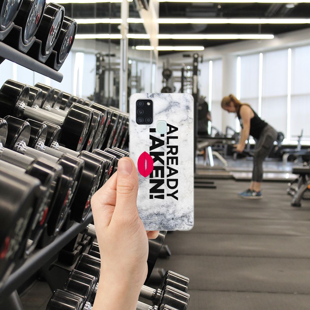 Stel dat je opdringende vrouwen of mannen van je af wil schudden op het moment dat je aan het feesten bent, omdat je al een partner hebt. Dan kun je dat met dit hoesje uitstekend duidelijk maken. Je Samsung Galaxy A21s neem je waarschijnlijk vaak ter hand, dus dan zal de boodschap als je over dit hoesje beschikt zeker weten overkomen. Ook in het openbaar vervoer zal dit hoesje ervoor zorgen dat je minder snel versierd wordt door het andere geslacht. Als je vrijgezel bent en op zoek naar gezelschap, dan kun je beter kiezen voor een ander hoesje uit ons ruime en gevarieerde assortiment. Het design Already Taken White staat op een Siliconen hoesje met naam. Dit hoesje wordt alleen aan de bovenkant bedrukt en is zeer flexibel. De randen van het hoesje blijven transparant.