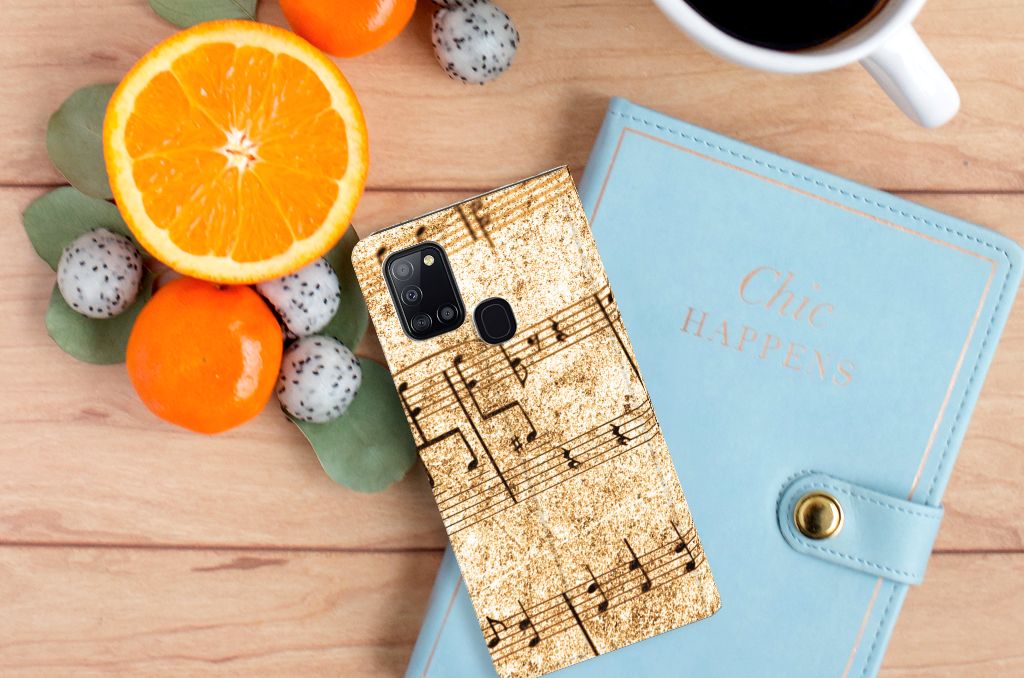 Ben je muzikant, dan is dit design hoesje met Bladmuziek wellicht echt iets voor jou. Met de intrede van nieuwe media wordt de rol van papieren bladmuziek teruggedrongen. Steeds vaker treft men 'bladmuziek' op een beeldschermapparaat, zoals een tablet-pc, e-reader of iPad aan. Gelukkig maar, want als er geen nieuwe media zouden zijn, hadden wij ook nooit onze Phone Case Designer kunnen ontwerpen. Met deze unieke ontwerpmodule kun je jouw favoriete band of artiest op je smartphone hoesje zetten, maar je kunt ook gaan voor dit prachtige design hoesje met print van bladmuziek. Het design staat op een Samsung Galaxy A21s Stand Case. Deze case beschermt jouw telefoon aan alle kanten en beschikt over een 1 opbergvakje en een speciale standaard. Het hoesje wordt afgesloten met een magneet aan de binnenzijde. De houder aan de binnenzijde is van TPU. Alle zijden van de stand case worden bedrukt.