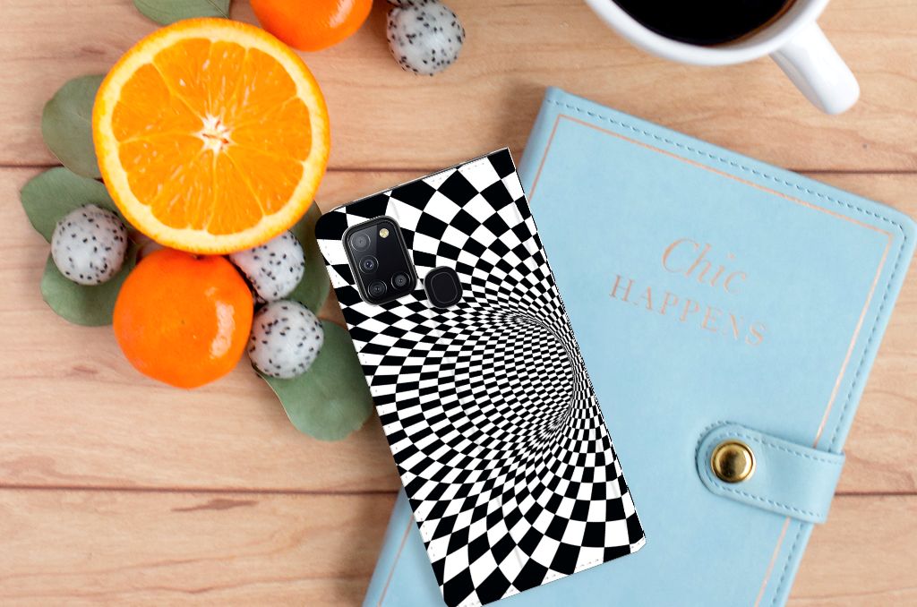 Stand Case Samsung Galaxy A21s Design Illusie Zwart & Wit