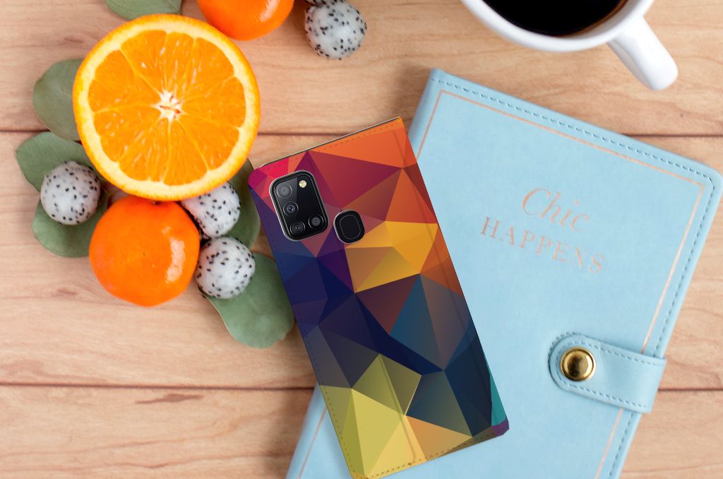 Veelkleurige driehoeken die samen eindeloze asymmetrische patronen lijken te vormen. Het is het abstracte schouwspel dat op dit fraaie hoesje voor je Samsung Galaxy A21s direct de aandacht trekt noemen we voor het gemak trekt noemen we voor het gemak Polygon Color. De een ziet er een berglandschap in, de ander piramides. Wat zie jij erin? Zeker is in elk geval dat de aanblik van dit fascinerende ontwerp je niet snel gaat vervelen. Het kleurige spel van lijnen en vlakken blijft eindeloos boeien en geeft jouw Stand Case een hippe en kunstzinnige uitstraling. De kracht die het lijnenspel uitstraalt, komt ook terug in het hoesje zelf. De solide hoes van PU-leer beschikt ook over een 1 pashouder en een speciale standaard. Het hoesje wordt afgesloten met een magneet aan de binnenzijde. De houder aan de binnenzijde is van TPU. Alle zijden worden bedrukt.
