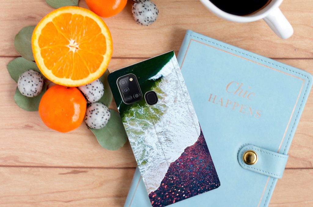 Ben je een beetje een artistiek type? Dan kan je wel eens enthousiast raken van dit smartphonehoesje. ‘Sea in Space’, zo noemt onze grafisch designer dit ontwerp. Dus mensen die van zon en zee kunnen genieten en tegelijkertijd van science fiction houden zullen deze case ongetwijfeld mooi vinden. Een beetje glitter en glamour zou je met een beetje fantasie ook nog wel kunnen ontdekken in dit design hoesje. Dit artistieke kunstwerkje is voor heel weinig geld te bestellen op onze website. Je krijgt er maximale bescherming van je Samsung Galaxy A21s voor terug. Het design staat op een Stand Case. Deze case beschermt jouw telefoon aan alle kanten en beschikt over een 1 opbergvakje en een speciale standaard. Het hoesje wordt afgesloten met een magneet aan de binnenzijde. De houder aan de binnenzijde is van TPU.